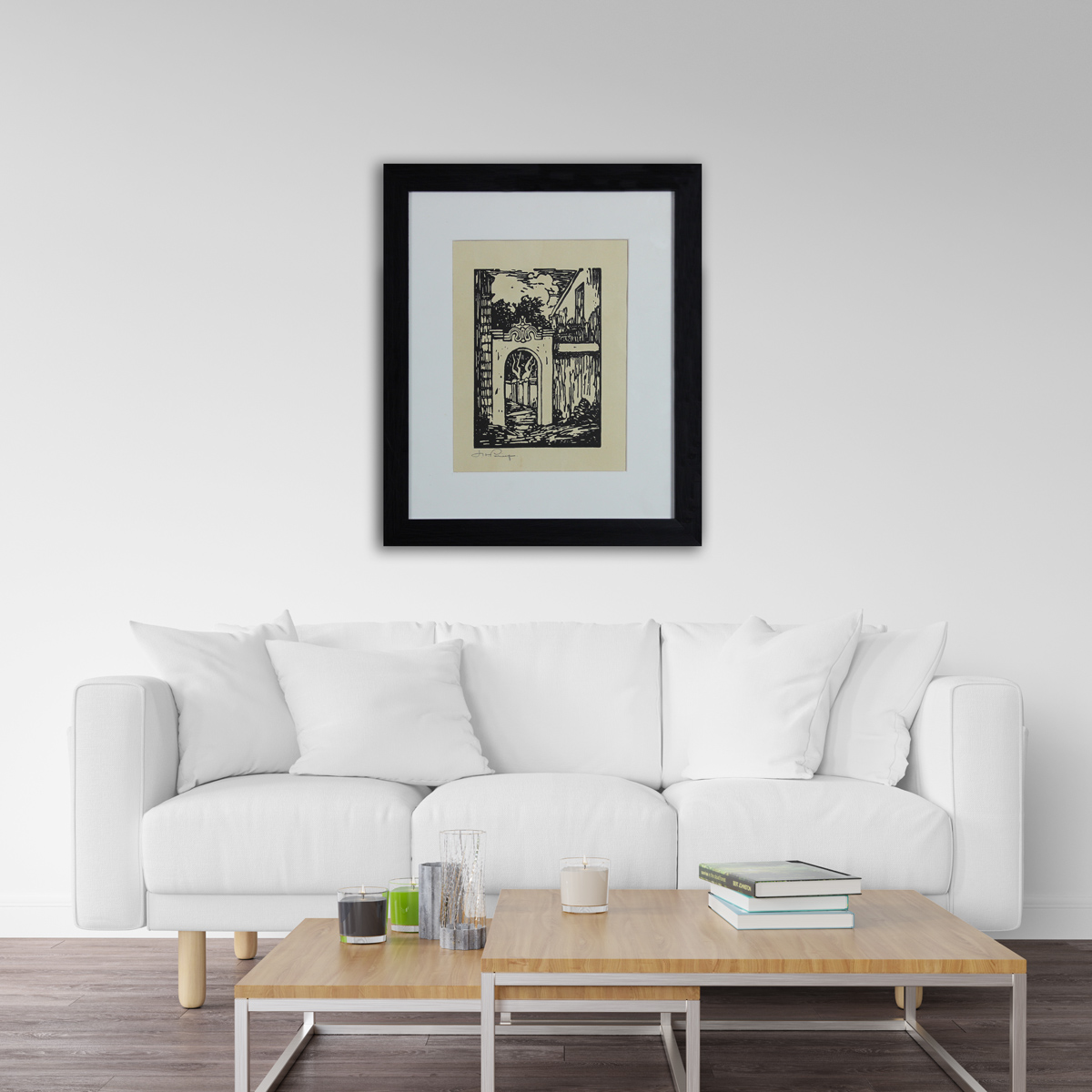 Ou Poortjie, Stellenbosch. Linocut, 19,4cm x 14,7cm image size, 41cm x 36cm including frame. Framed.