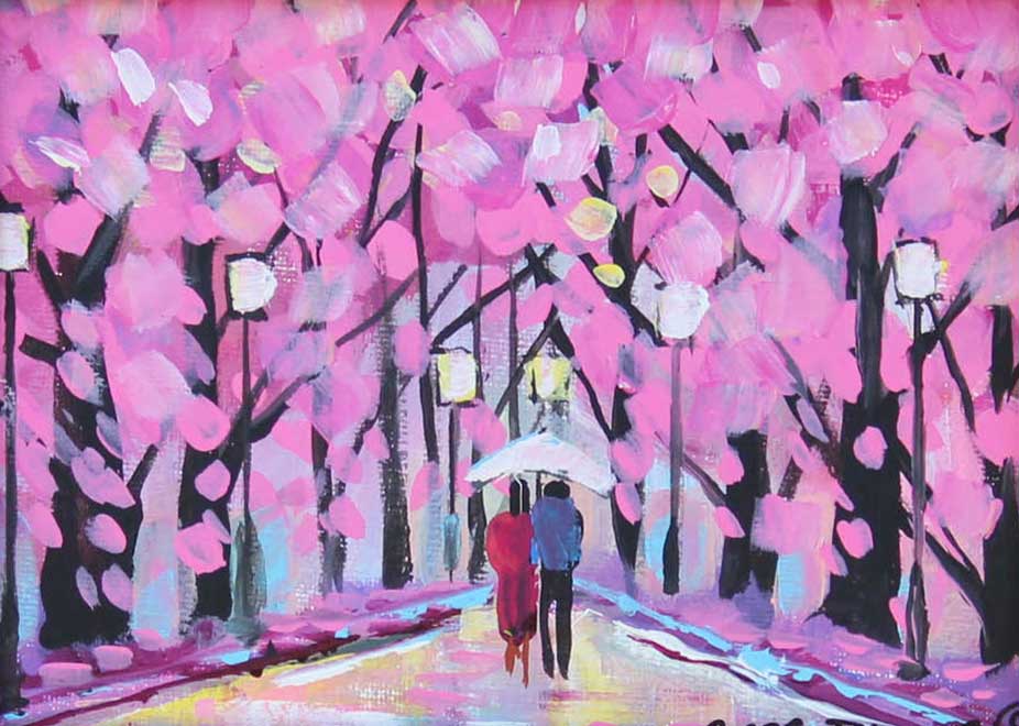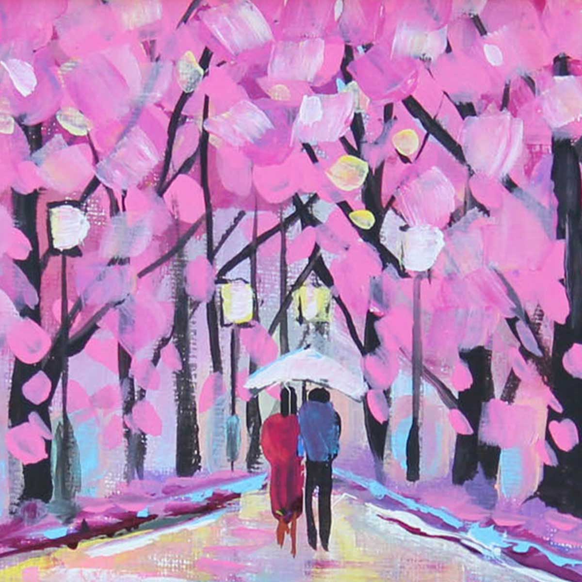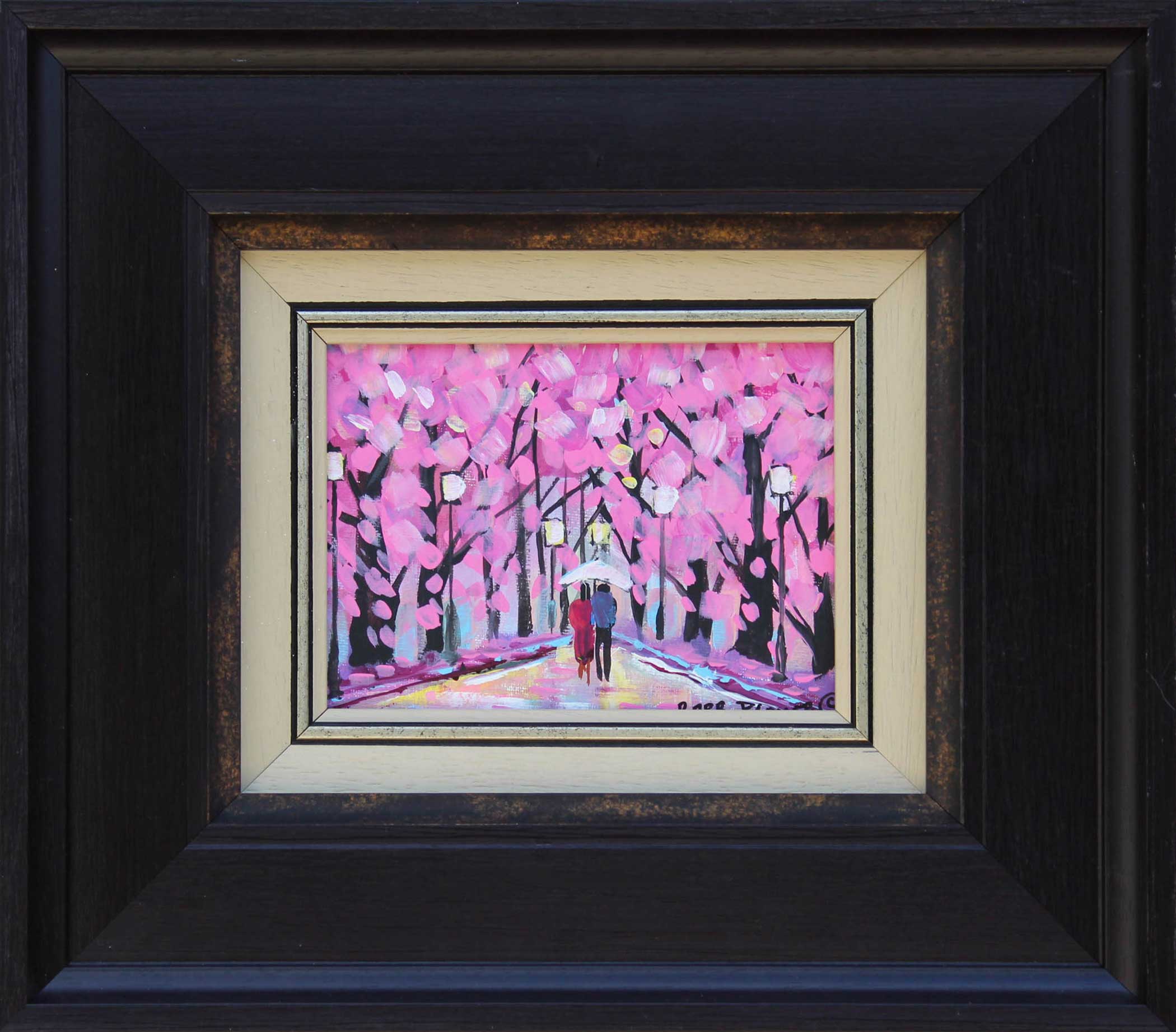 Cherry Blossoms. Oil on Board 15cm x 20cm. Framed.