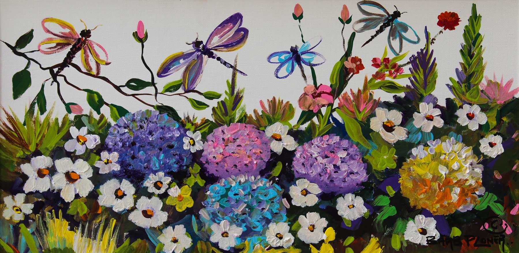 Jacaranda Lane. Oil on Canvas, 30cm x 60cm excluding frame, 55cm x 85,5cm including frame. Framed.