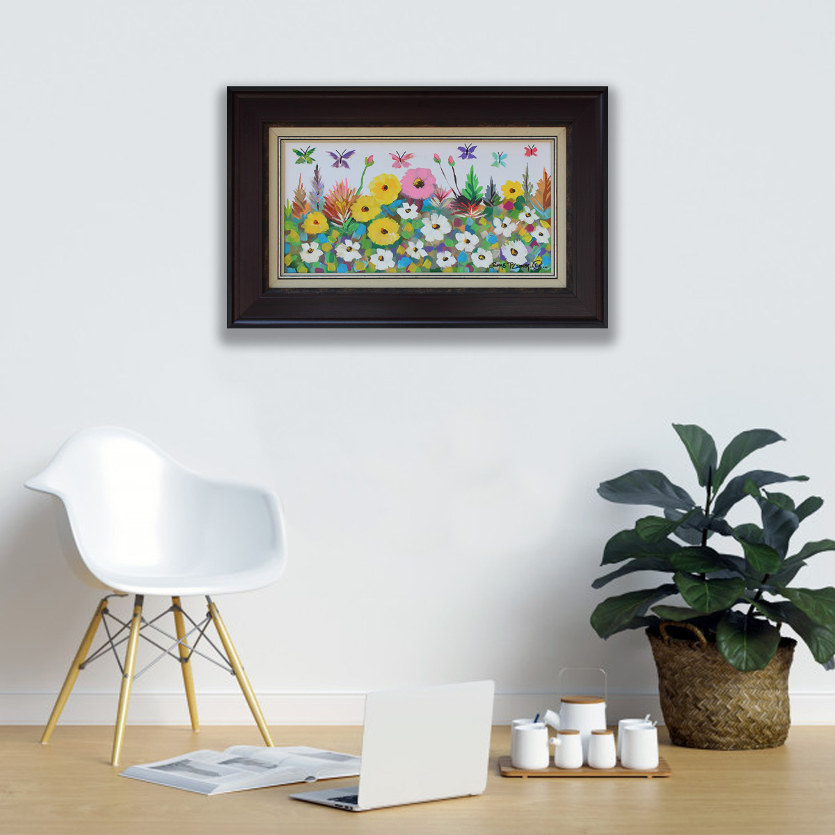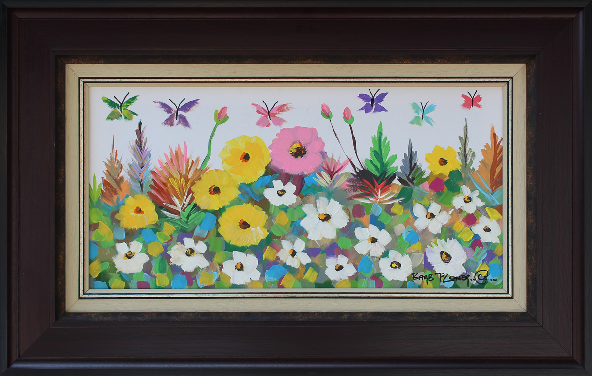 Touch of Spring. Oil on Canvas, 30cm x 60cm excluding frame, 53.5cm x 84cm including frame. Framed.