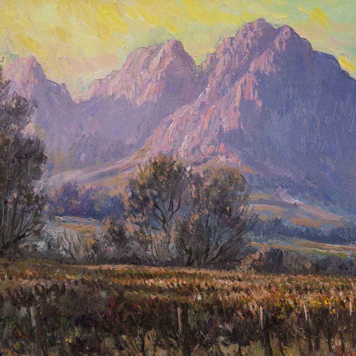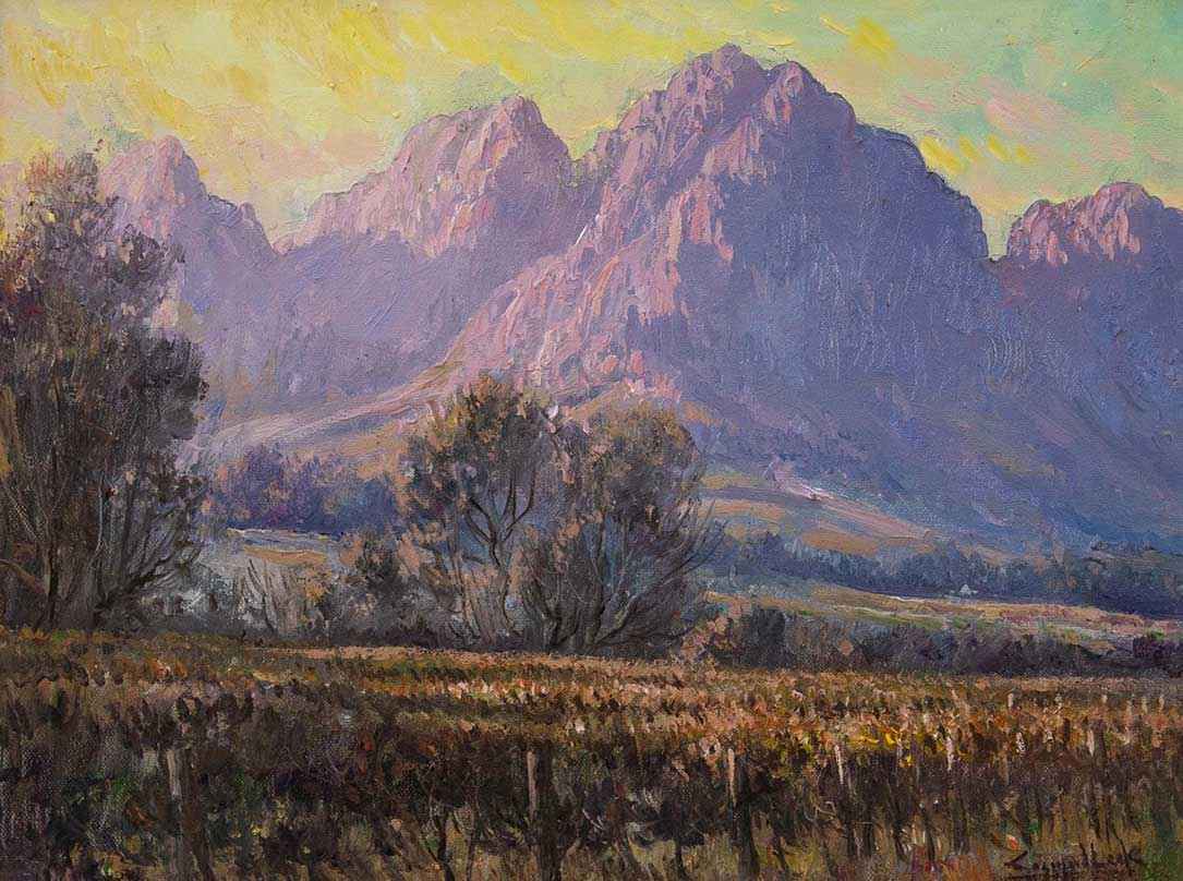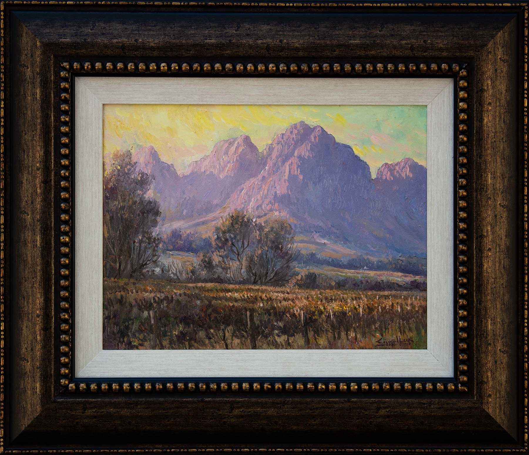 Vineyard near Kriel. Oil on canvas 30cm x 40cm. Framed.