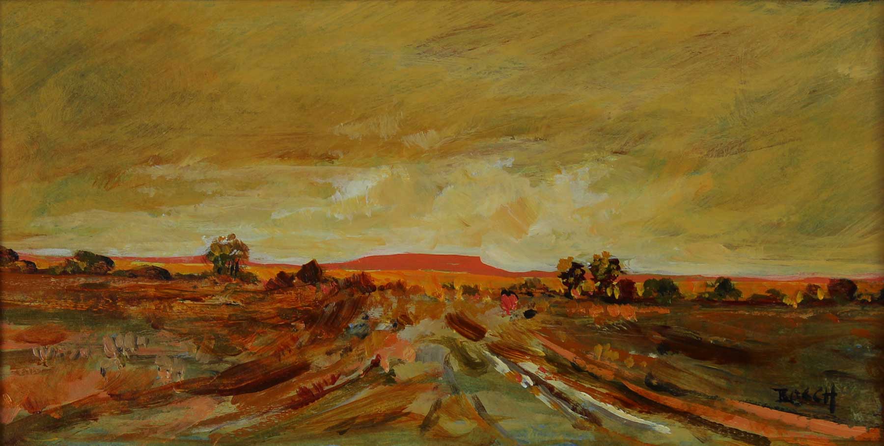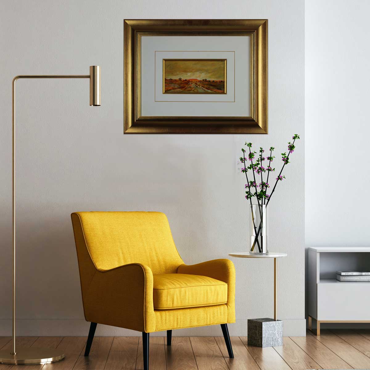 Landscape. Acrylic on Board, 14cm x 25cm excluding frame, 47cm x 58.5cm including frame. Framed.