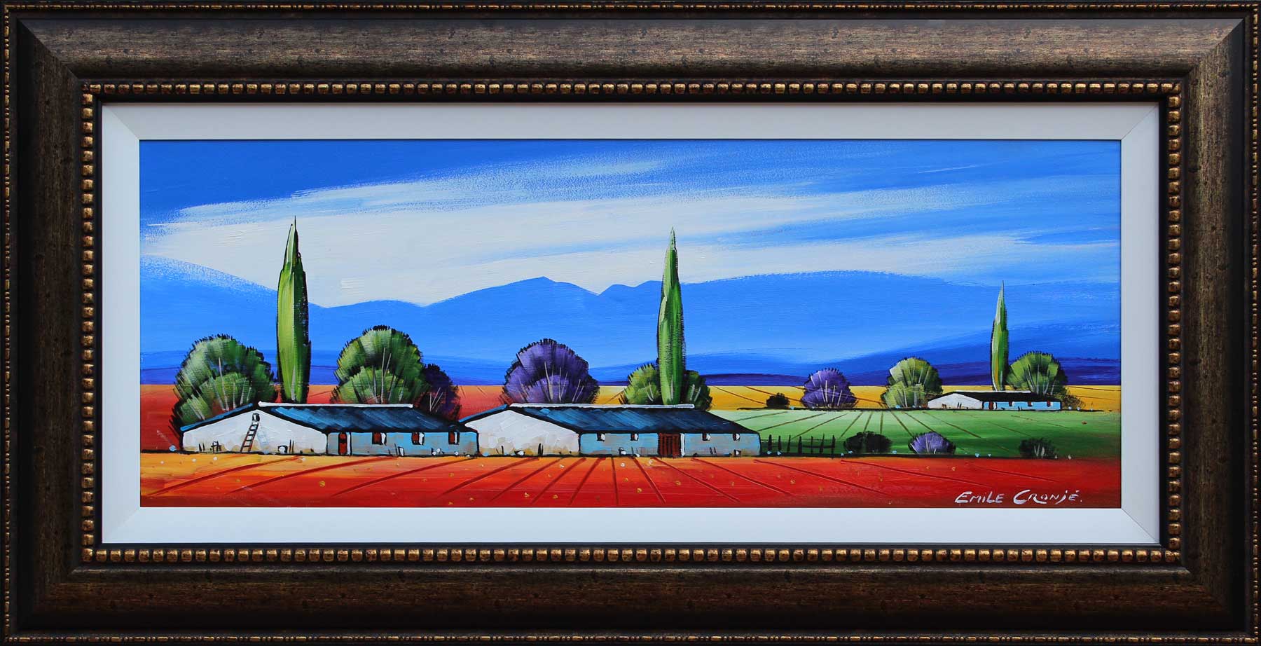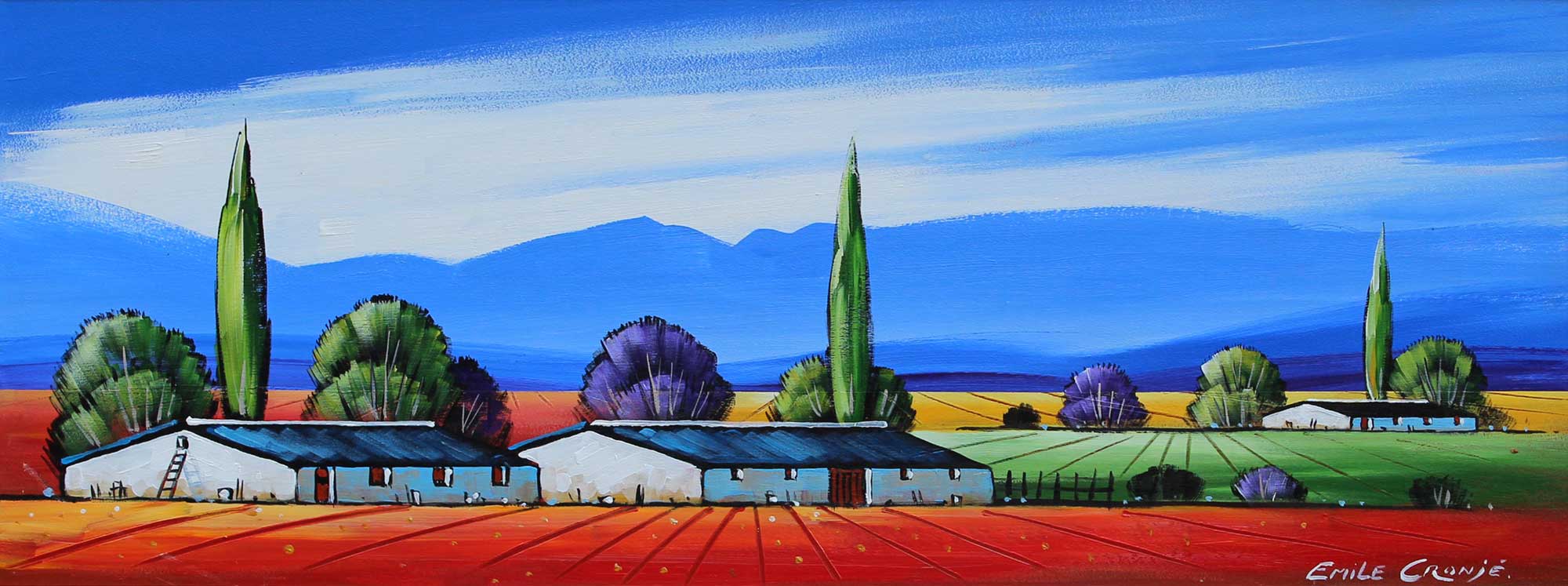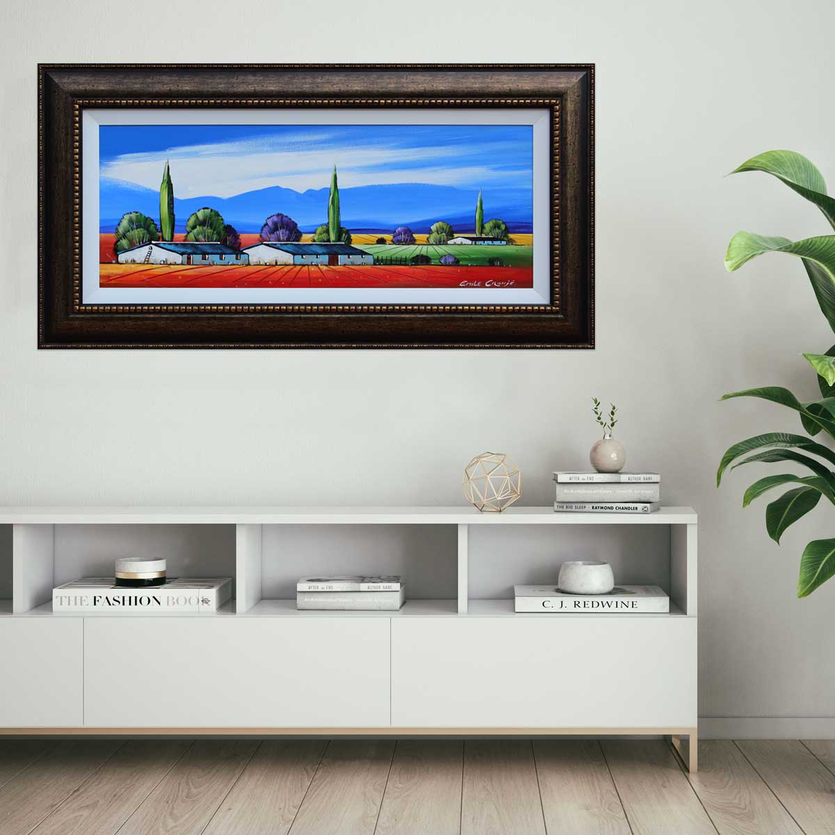 Extensive Landscape. Oil on Board 35cm x 90cm. Framed.