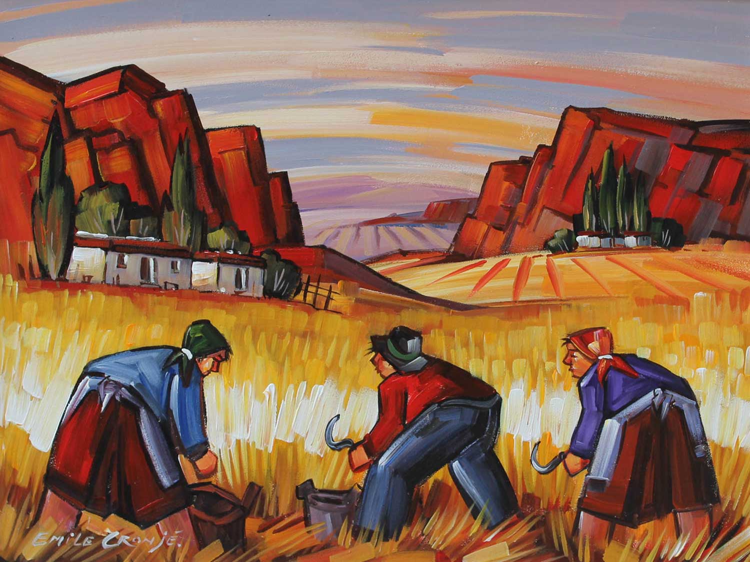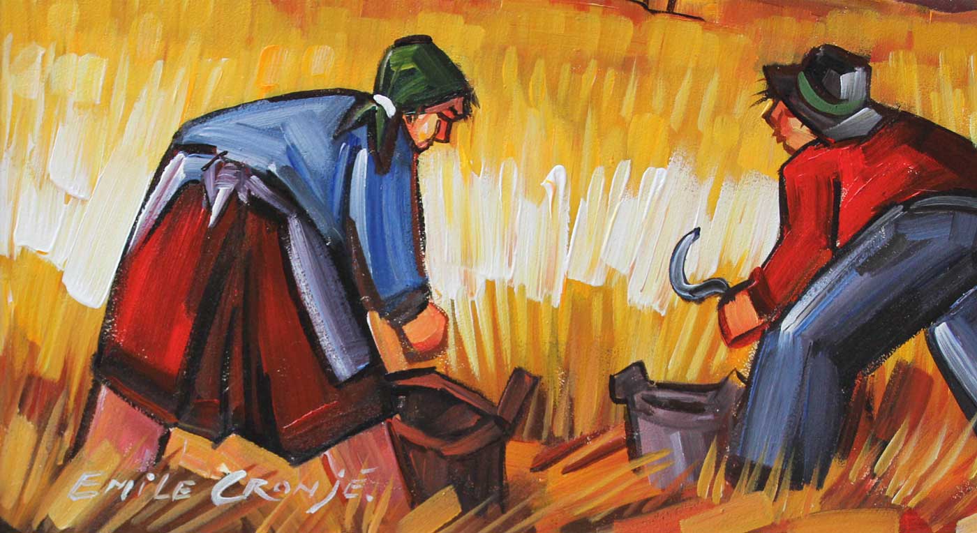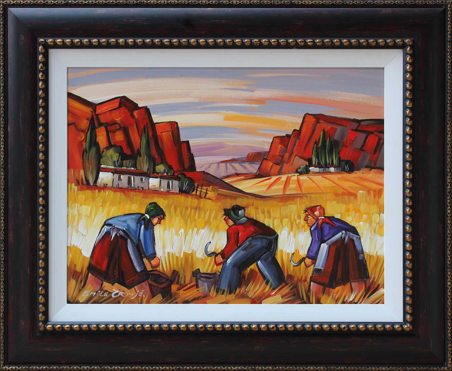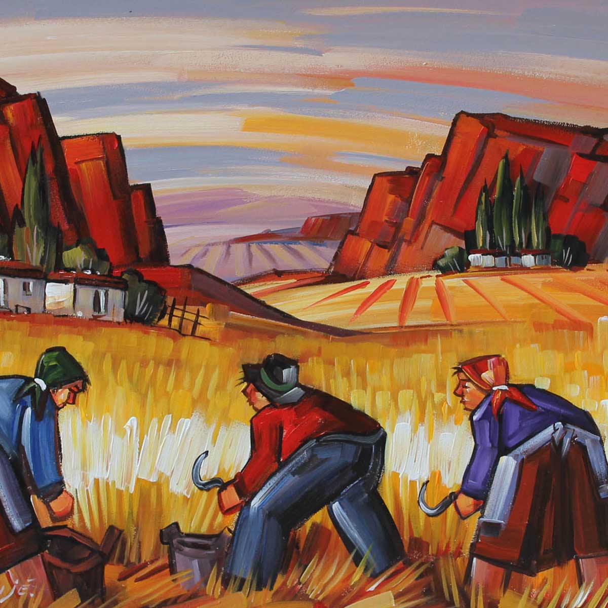 Harvesters. Oil on Board 45cm x 60cm. Framed.