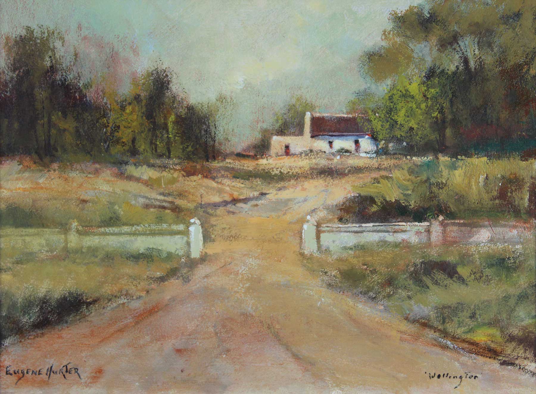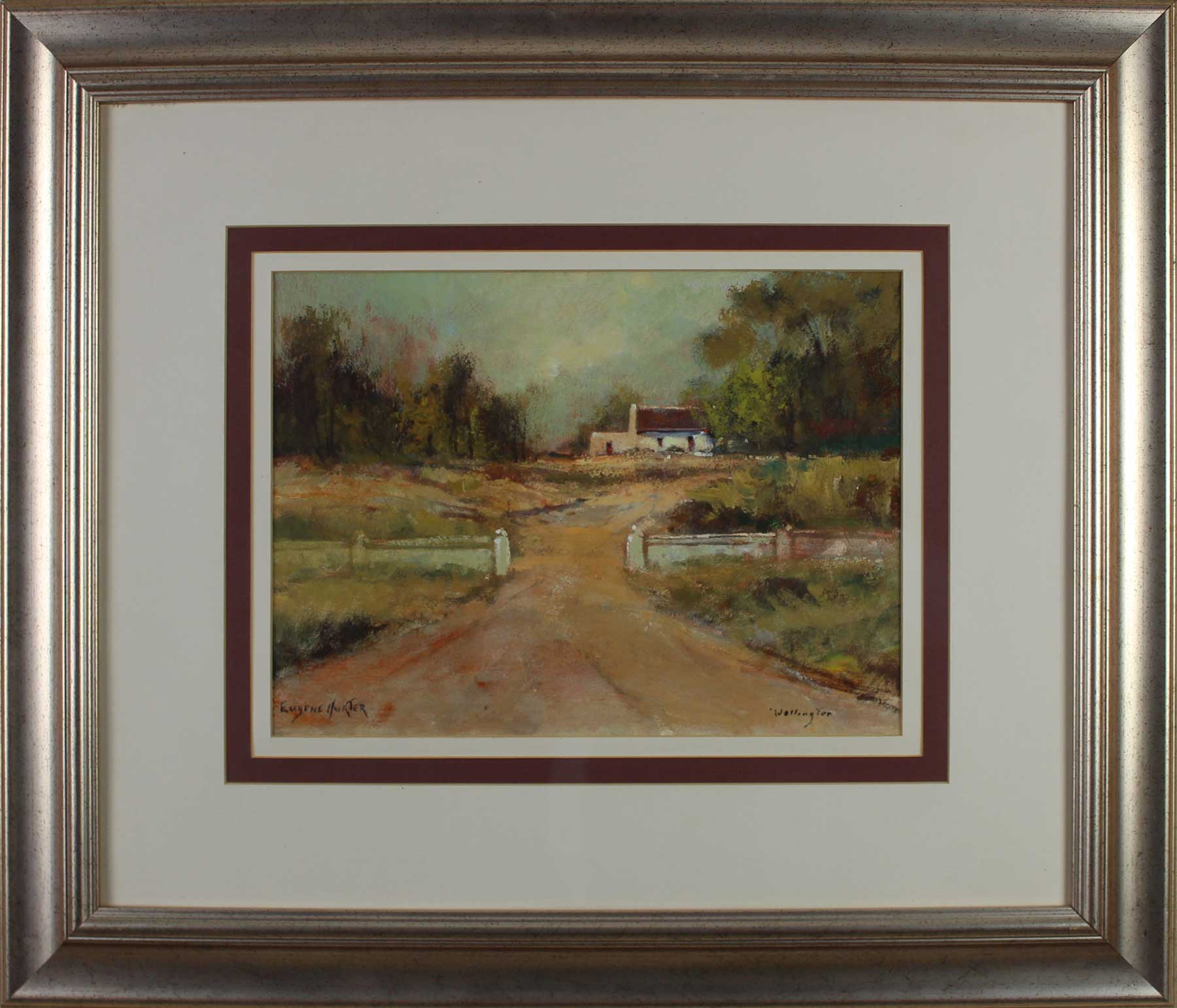 Jacaranda Street Scene. Oil on Board, 45cm x 60cm excluding frame, 70cm x 84cm including frame. Framed.