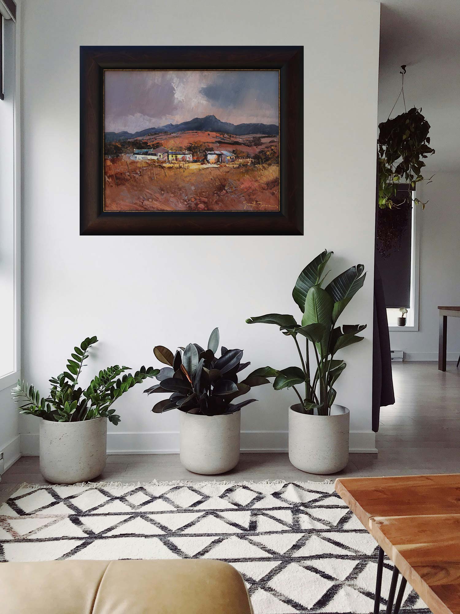 Rural Landscape. Oil on Canvas, 41cm x 51cm excluding frame, 53cm x 63cm including frame. Framed.