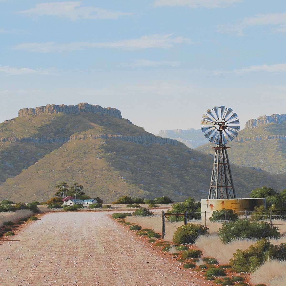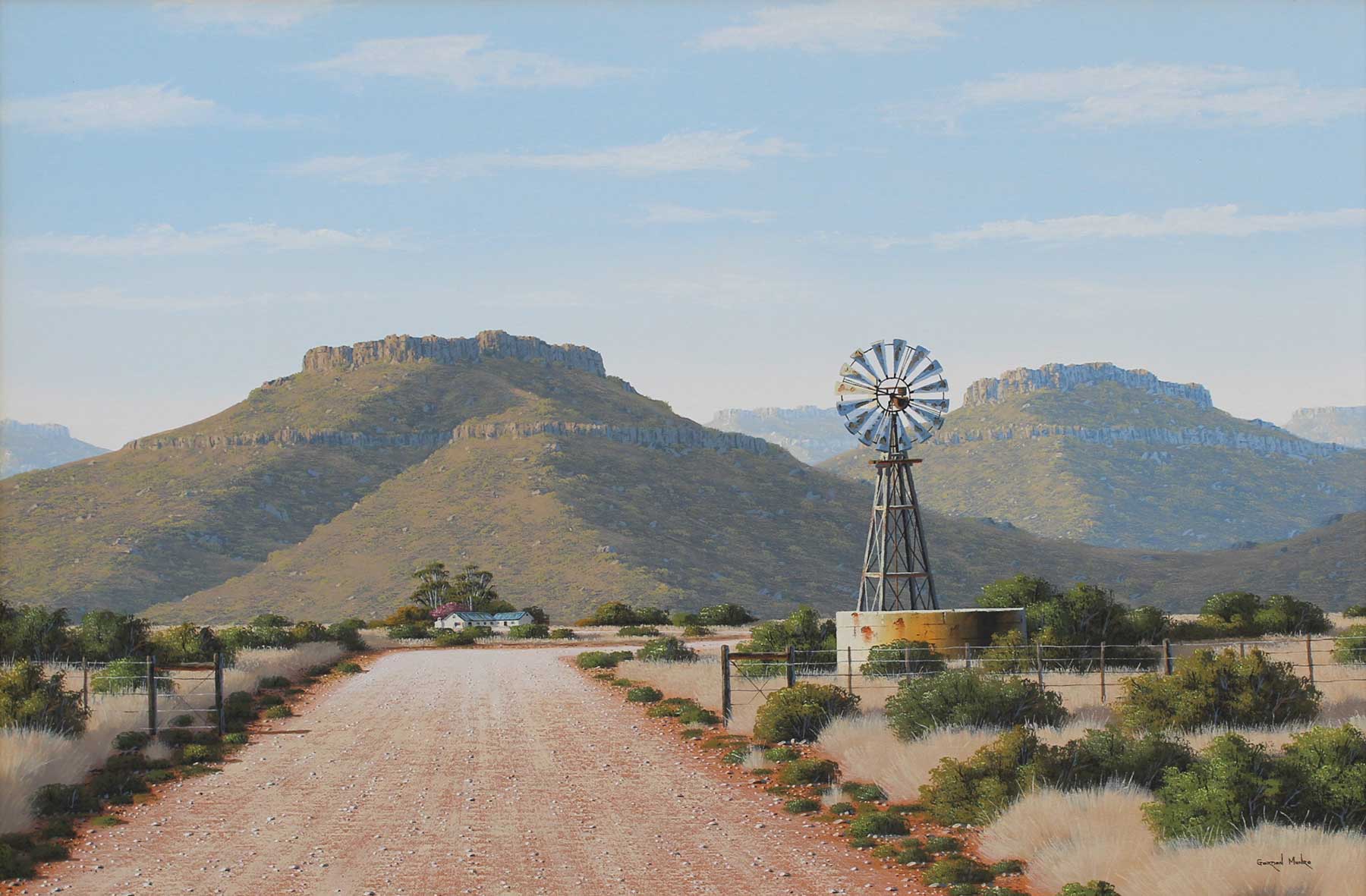 Karoo Landscape. Oil on Canvas on Board 60cm x 90cm. Framed.