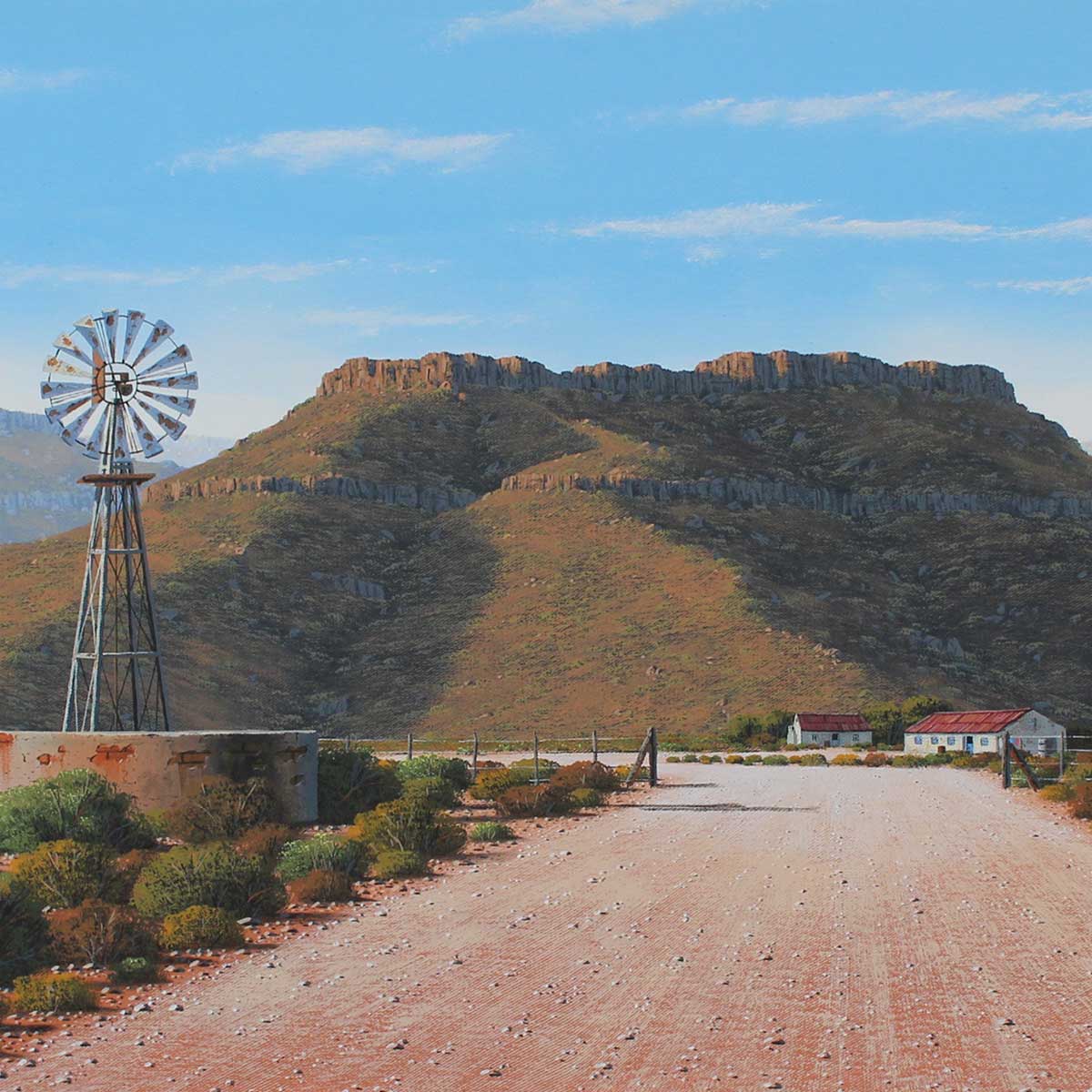 Karoo Landscape. Oil on Canvas on Board 54cm x 100cm. Framed.