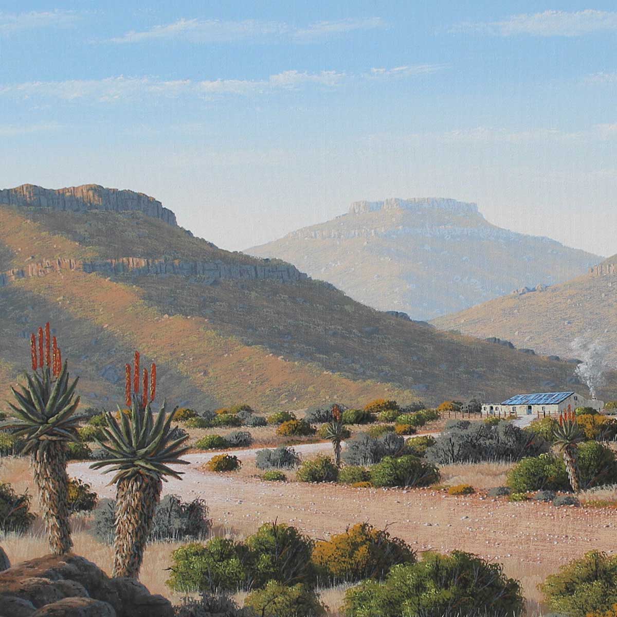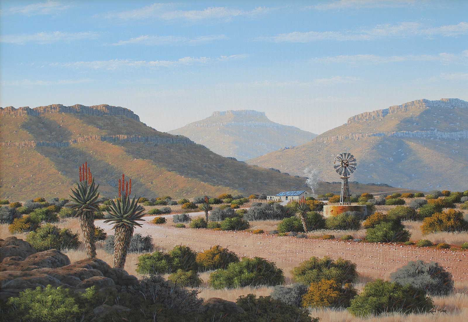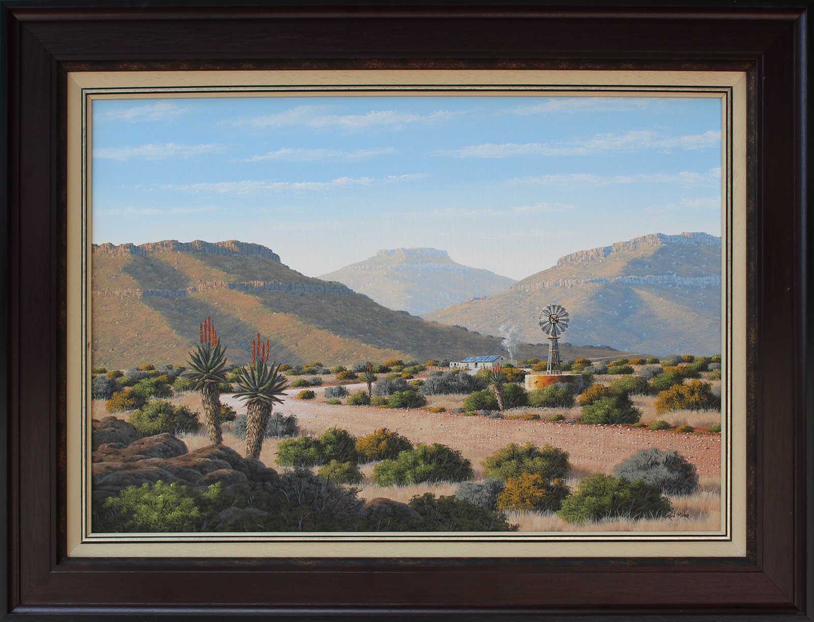 Karoo Landscape. Oil on Canvas on Board 60cm x 90cm. Framed.