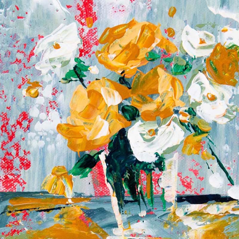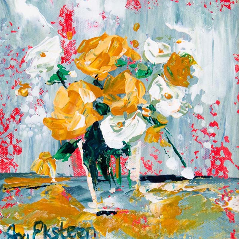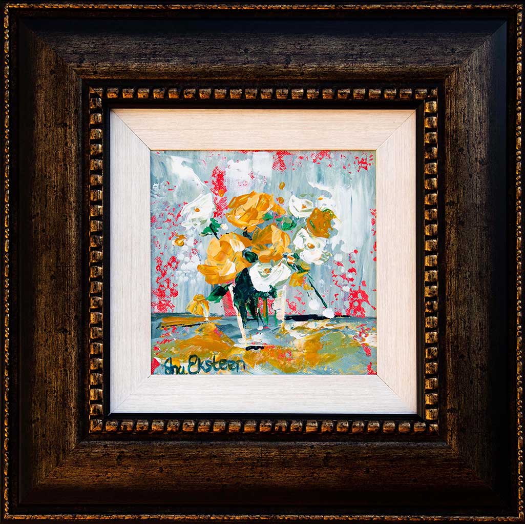 Still Life with Flowers. Oil on canvas 20 x 20cm. Framed.