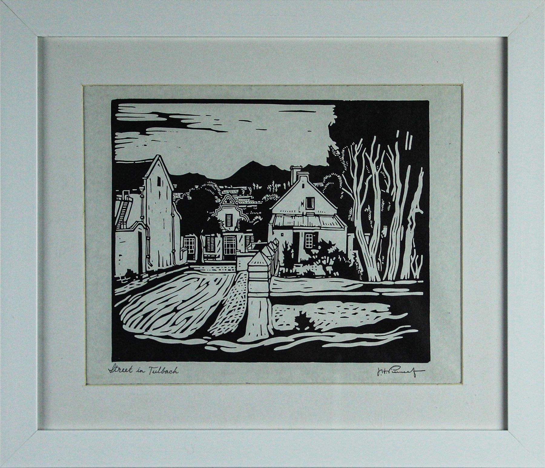 Street in Tulbach. Photolithographic Print, (Printed Signature) 20.5cm x 25cm excluding frame, 37cm x 43cm including frame. Framed.