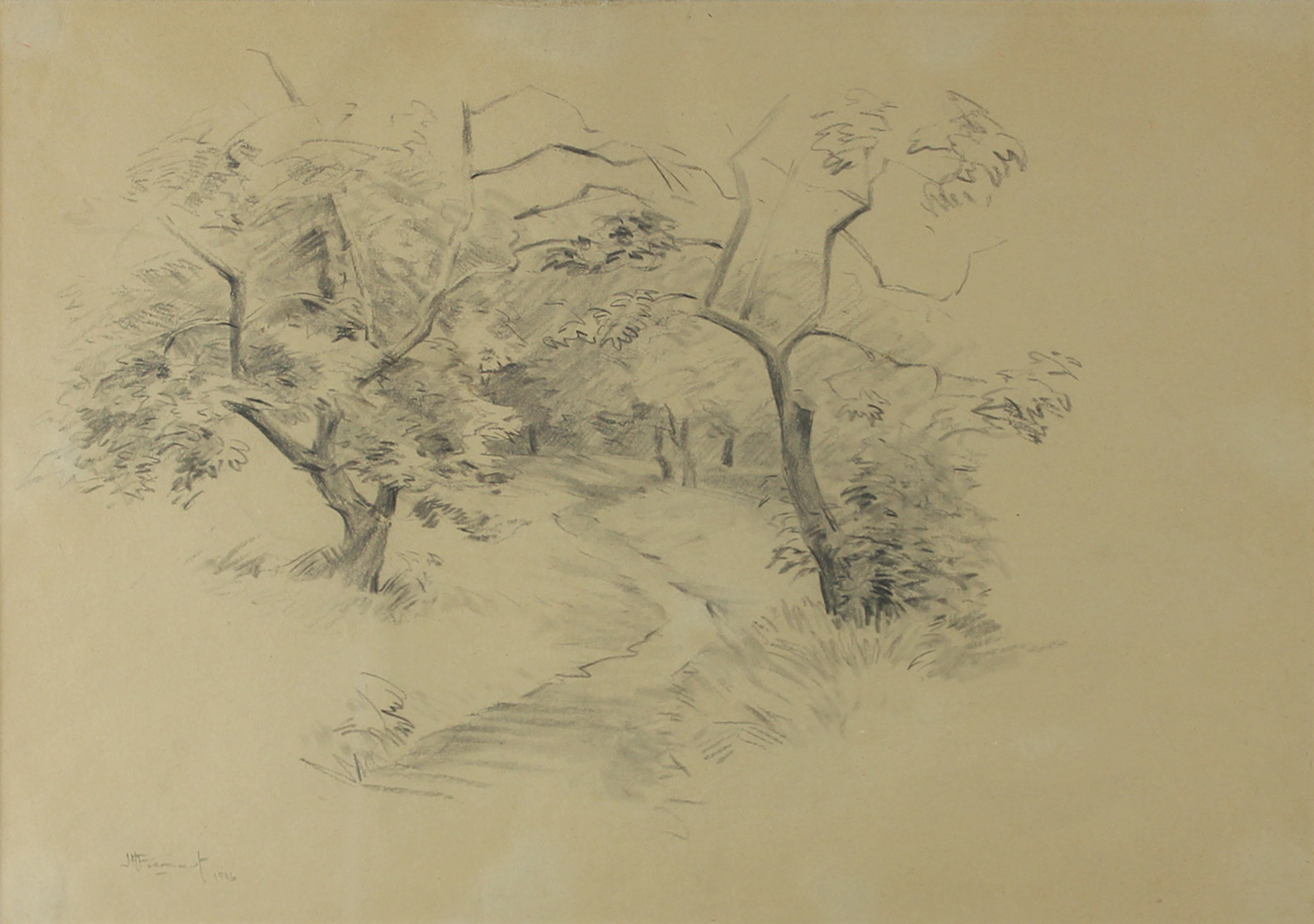 Labourer’s Cottages. Oil on Board, 45cm x 60cm excluding frame, 69.5cm x 84.5cm including frame. Framed.