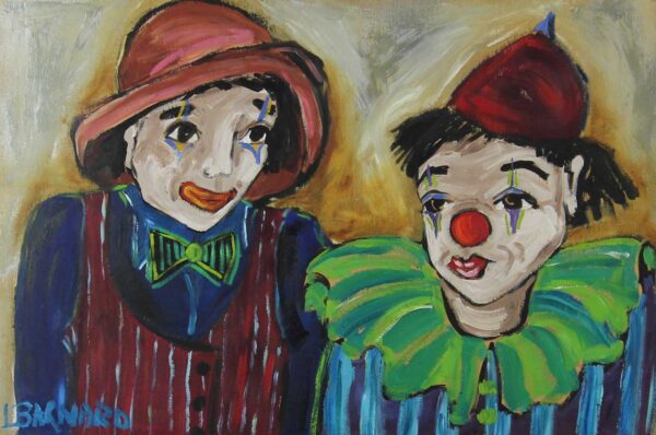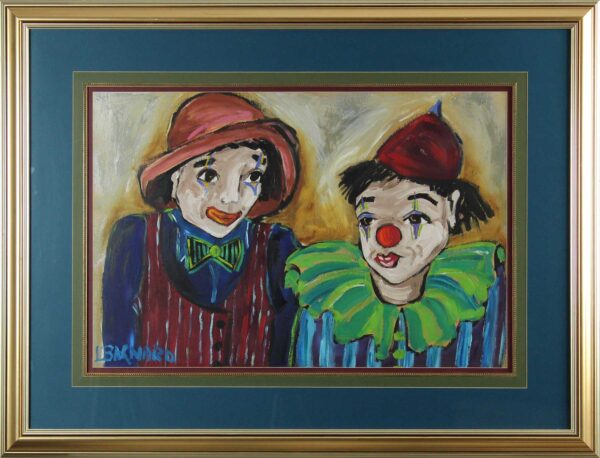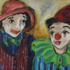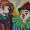Clowns. Acrylic on Board 52cm x 77cm. Framed.