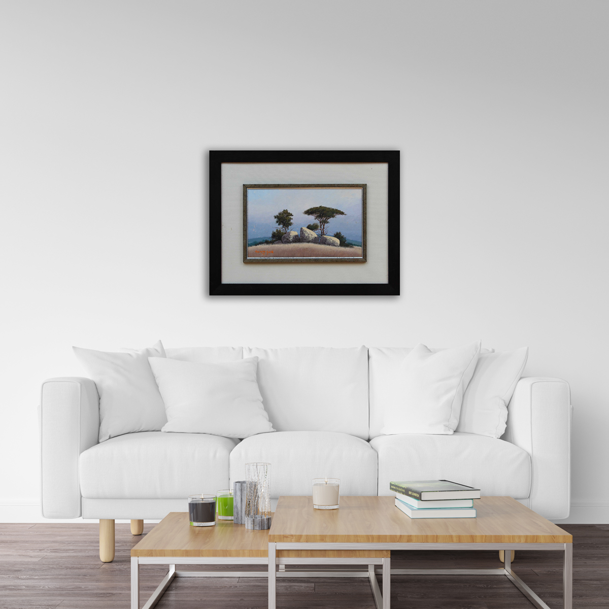 Landscape with Trees and Rocks. Oil on Canvas/Board, 26cm x 43cm excluding frame, 54cm x 71cm including frame. Framed.