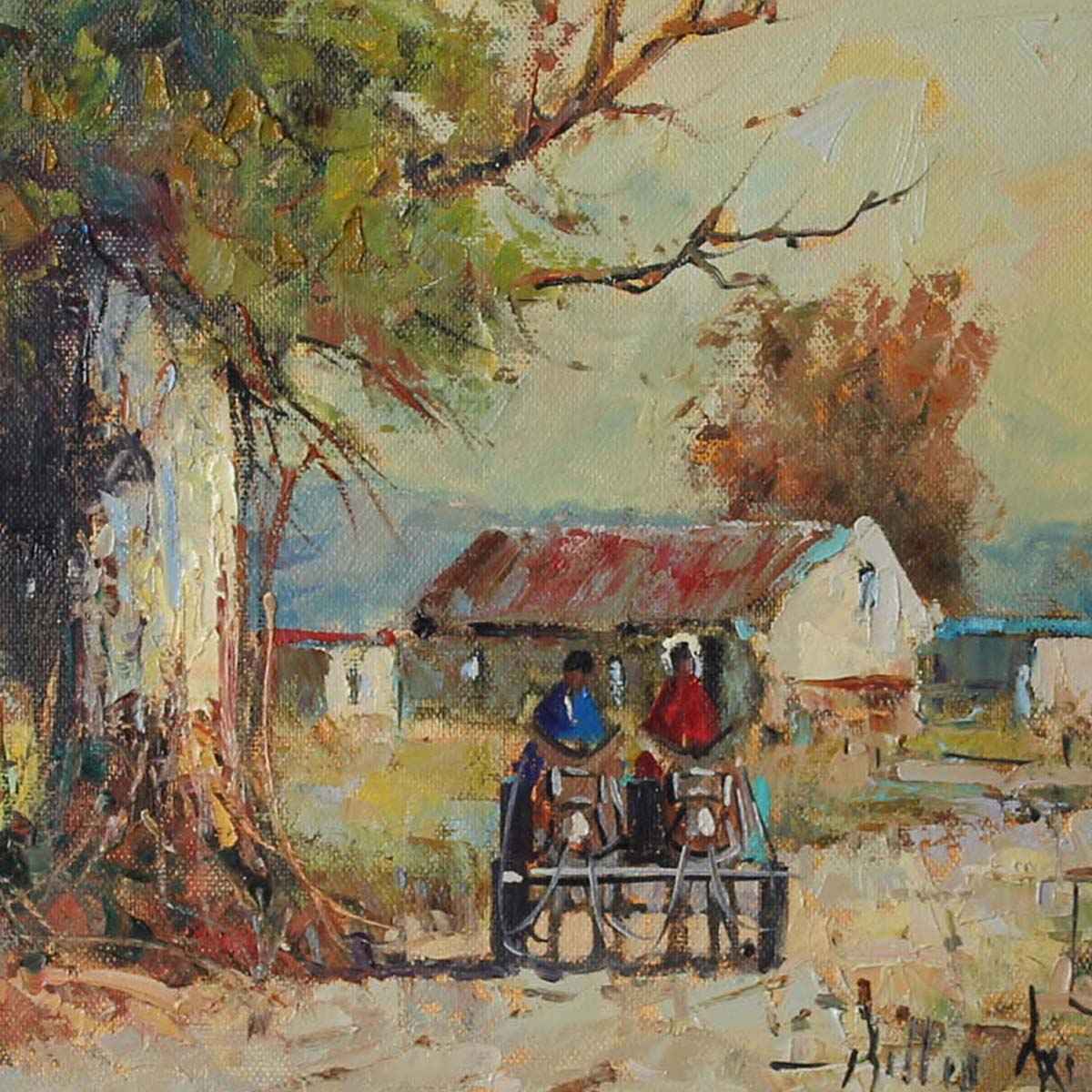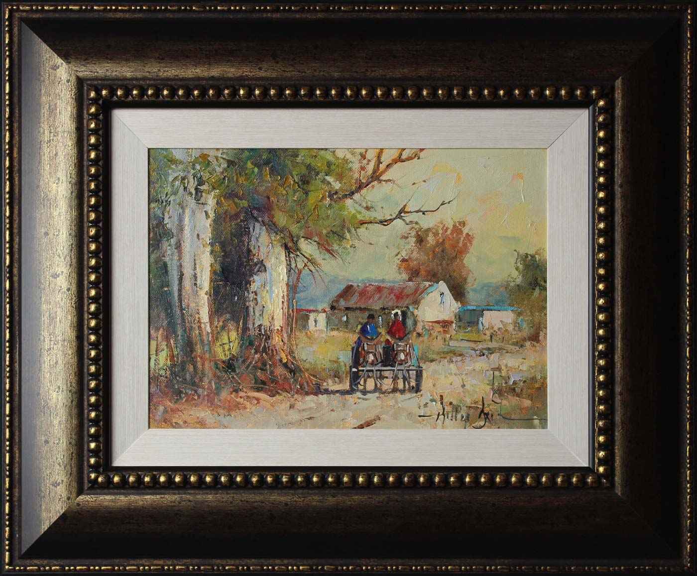 Donkey Cart. Oil on Board 25cm x 35cm. Framed.