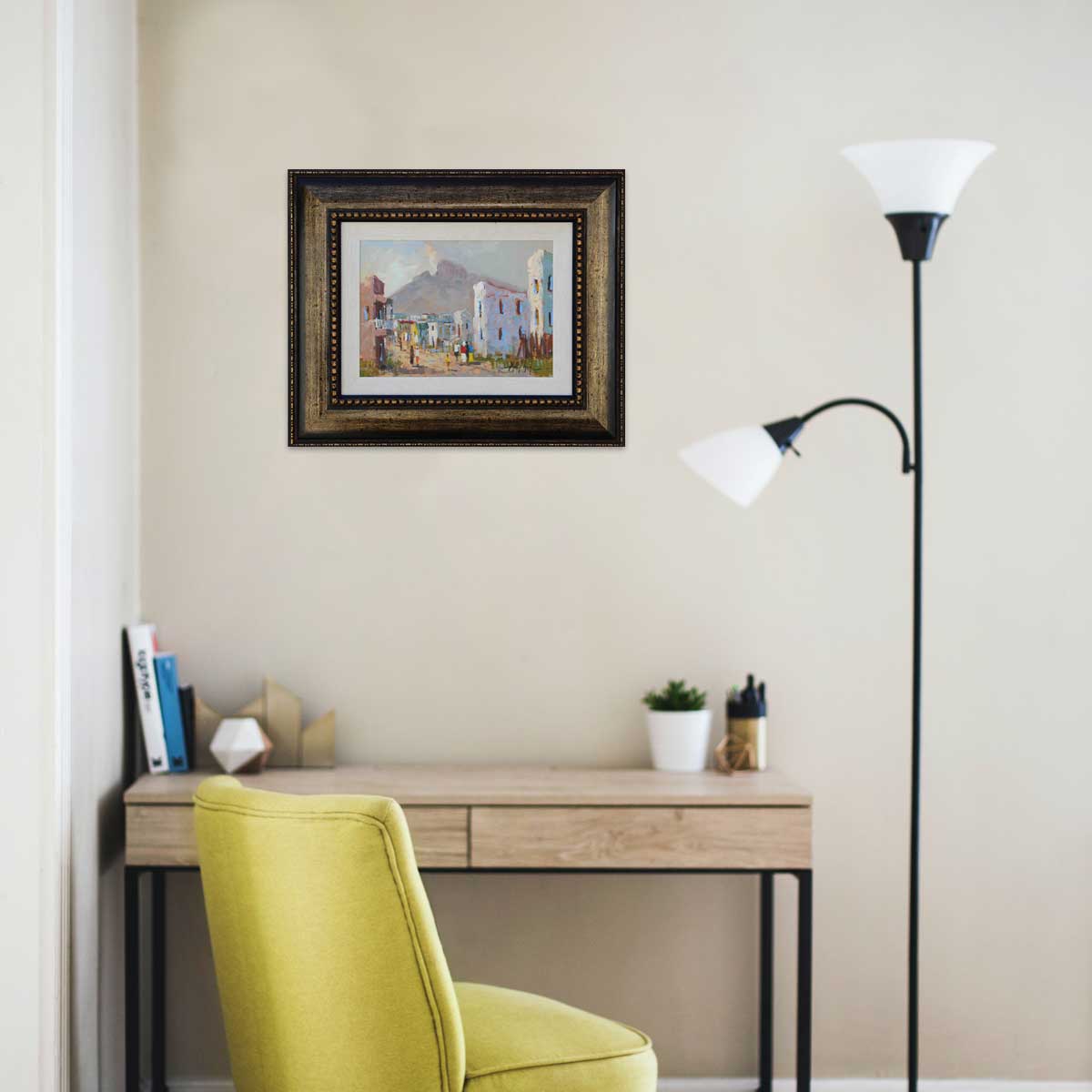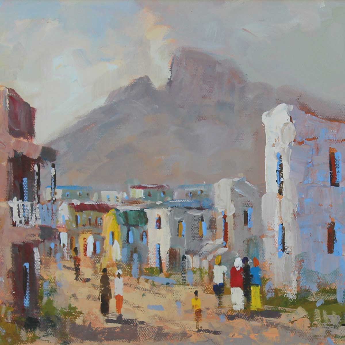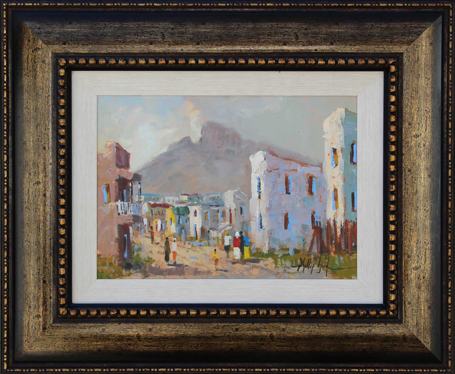 District 6. Oil on Board 25cm x 35cm excluding frame, 50cm x 60cm including frame. Framed.