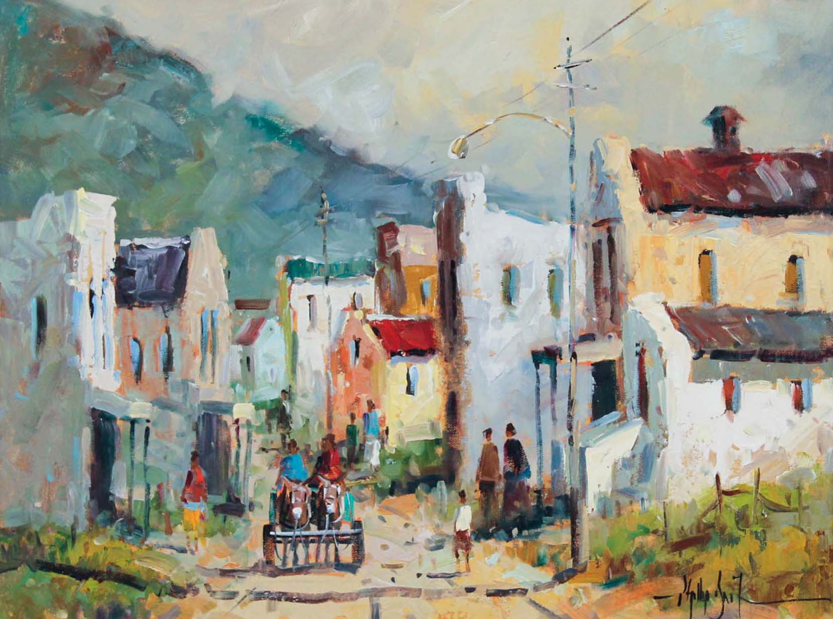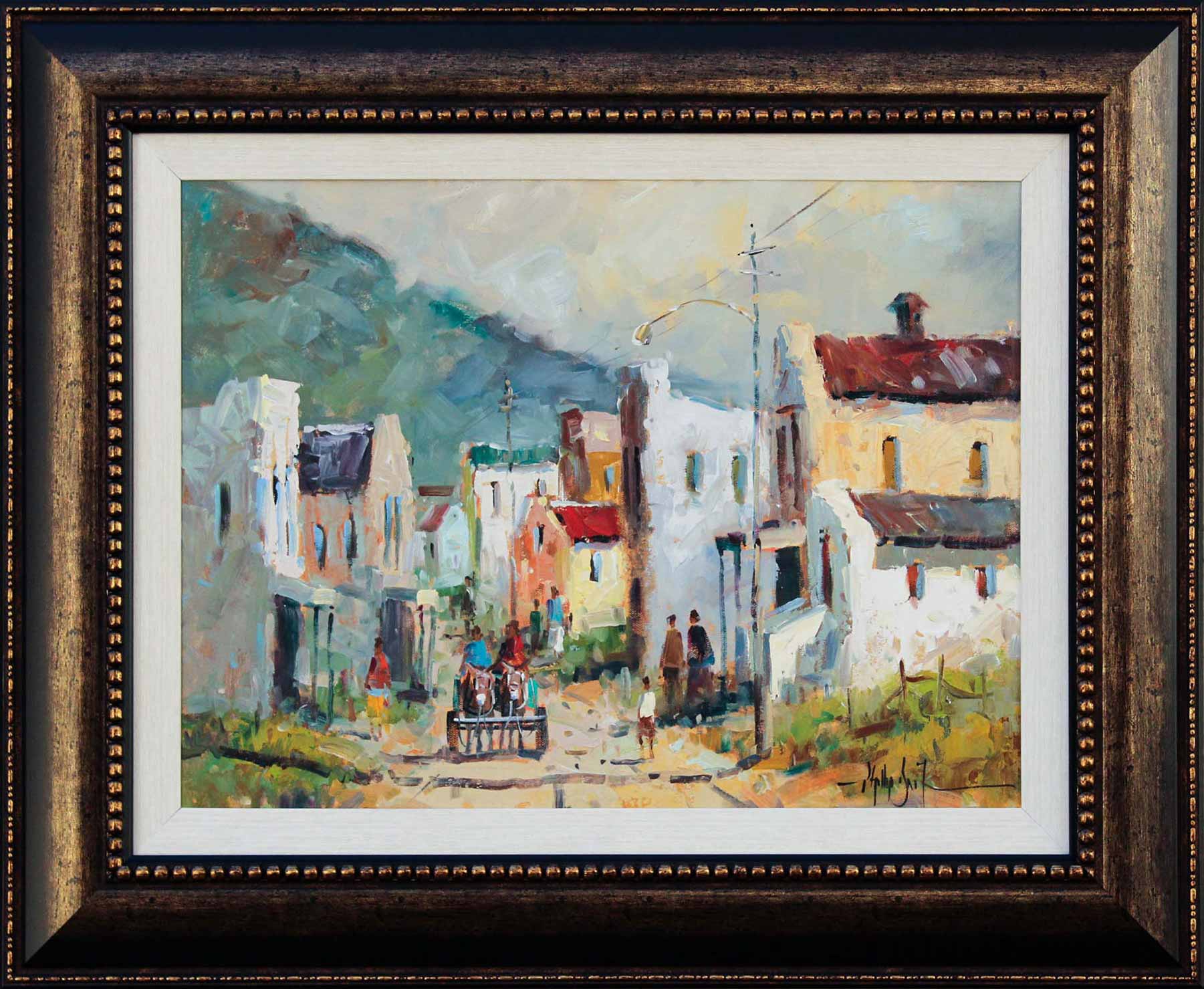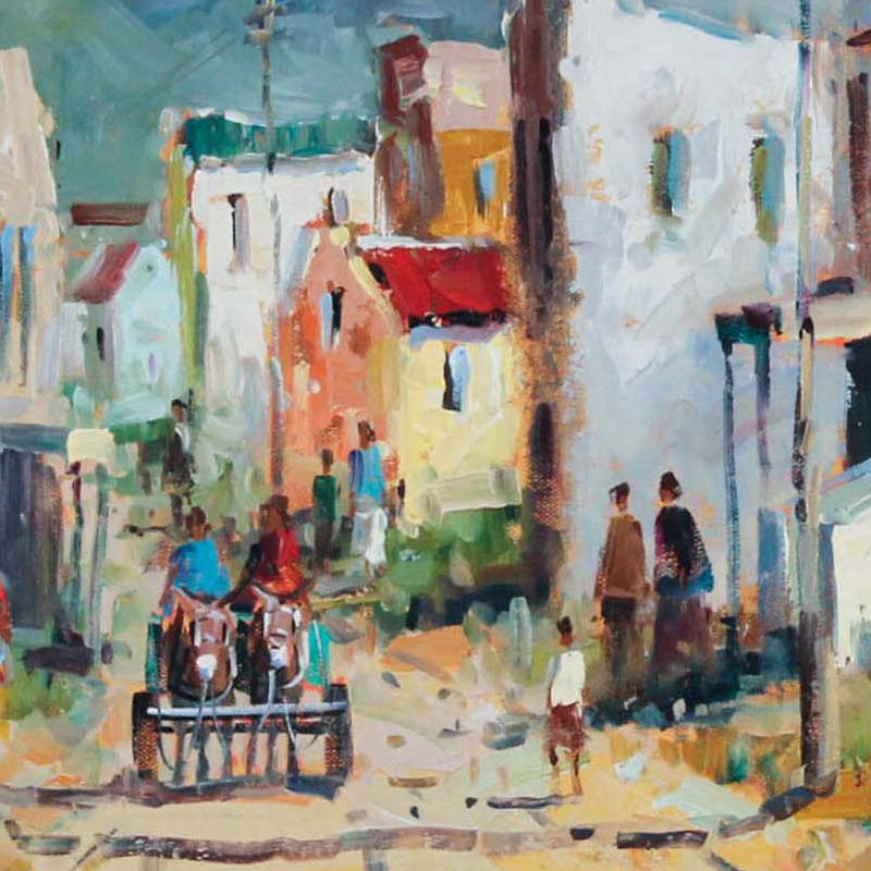 Donkey Cart. Oil on Board 45cm x 60cm. Framed.