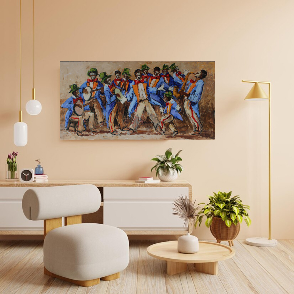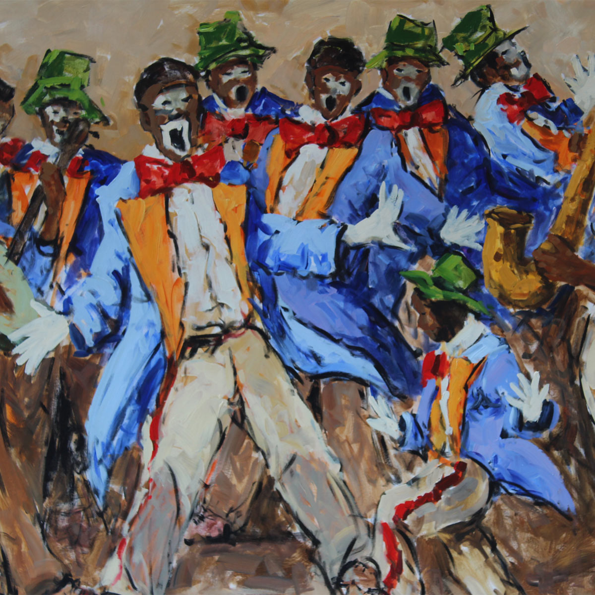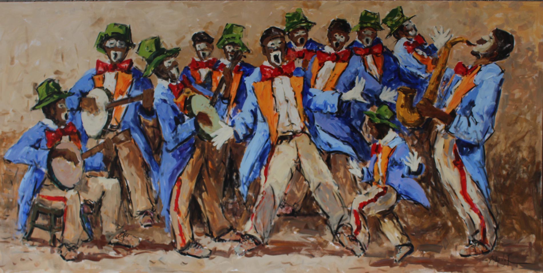 Kaapse Klopse. Oil on Canvas on Board, 100cm x 200cm. Unframed.