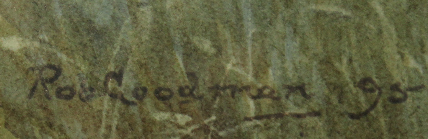 Robert Goodman was born in Taplow in Buckinghamshire in 1871. He moved with his family to the Cape in 1886 where he attended lessons with JS Morland, the first president of the South African Society of Artists. Goodman continued his training at the Académie Julian in Paris from 1895, before basing himself in London in 1897. He travelled frequently to India and back to South Africa occasionally, where he recorded scenes from the Anglo-Boer War front. He chose to adopt the name Gwelo in the hope of standing out in the London art scene and subsequently signed his work with his now famous ‘RGG’ monogram.