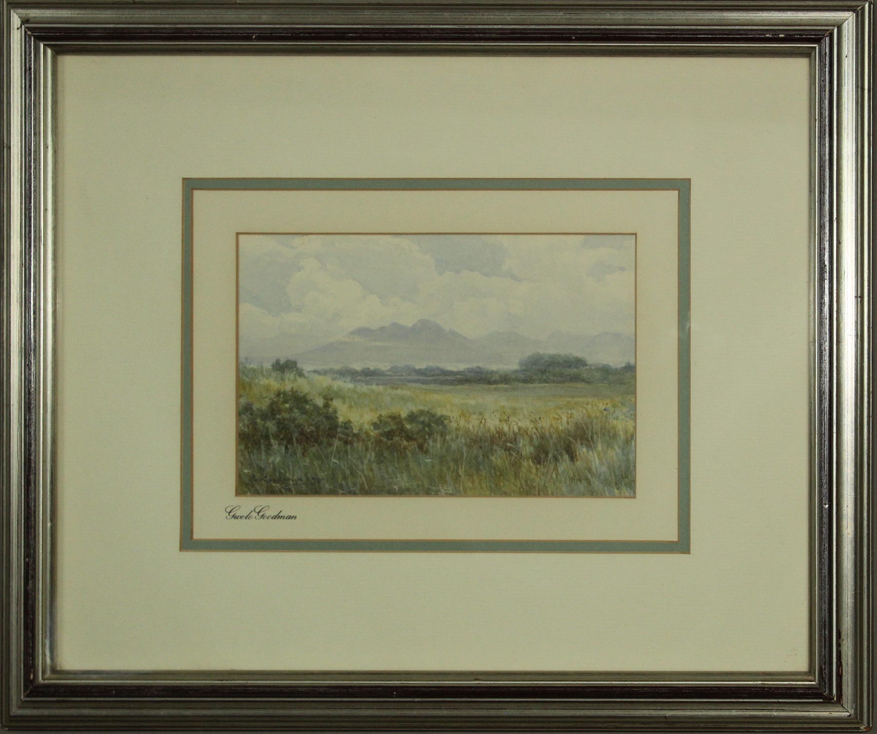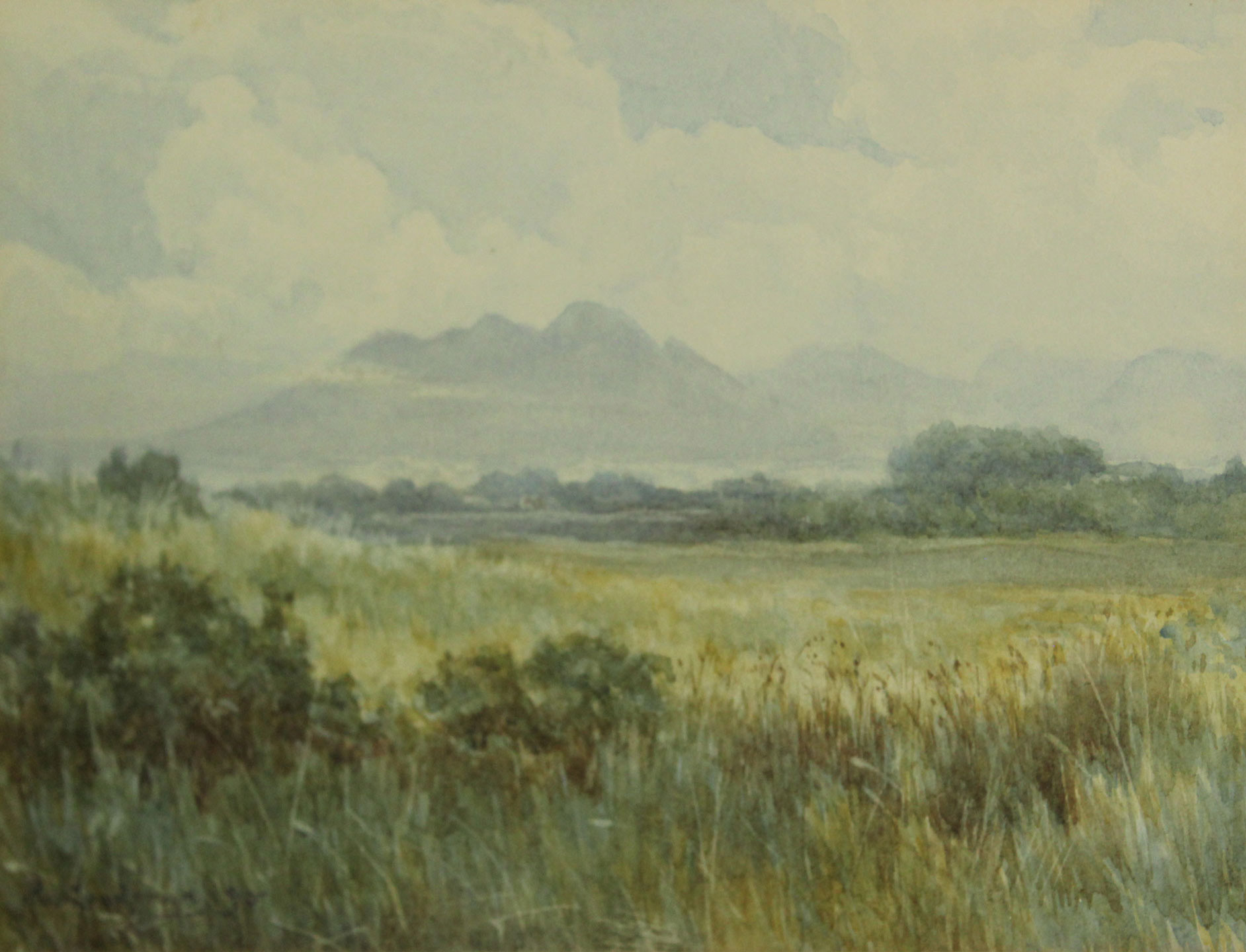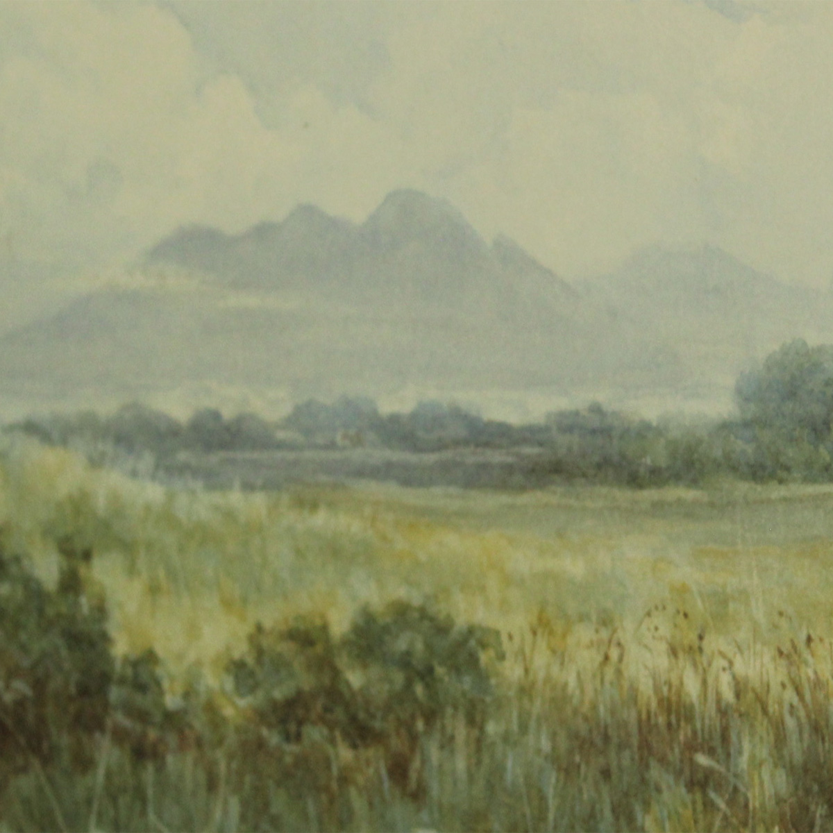 Mountain Landscape. Watercolour on Paper, 16cm x 24cm excluding frame, 43cm x 51cm including frame. Framed.