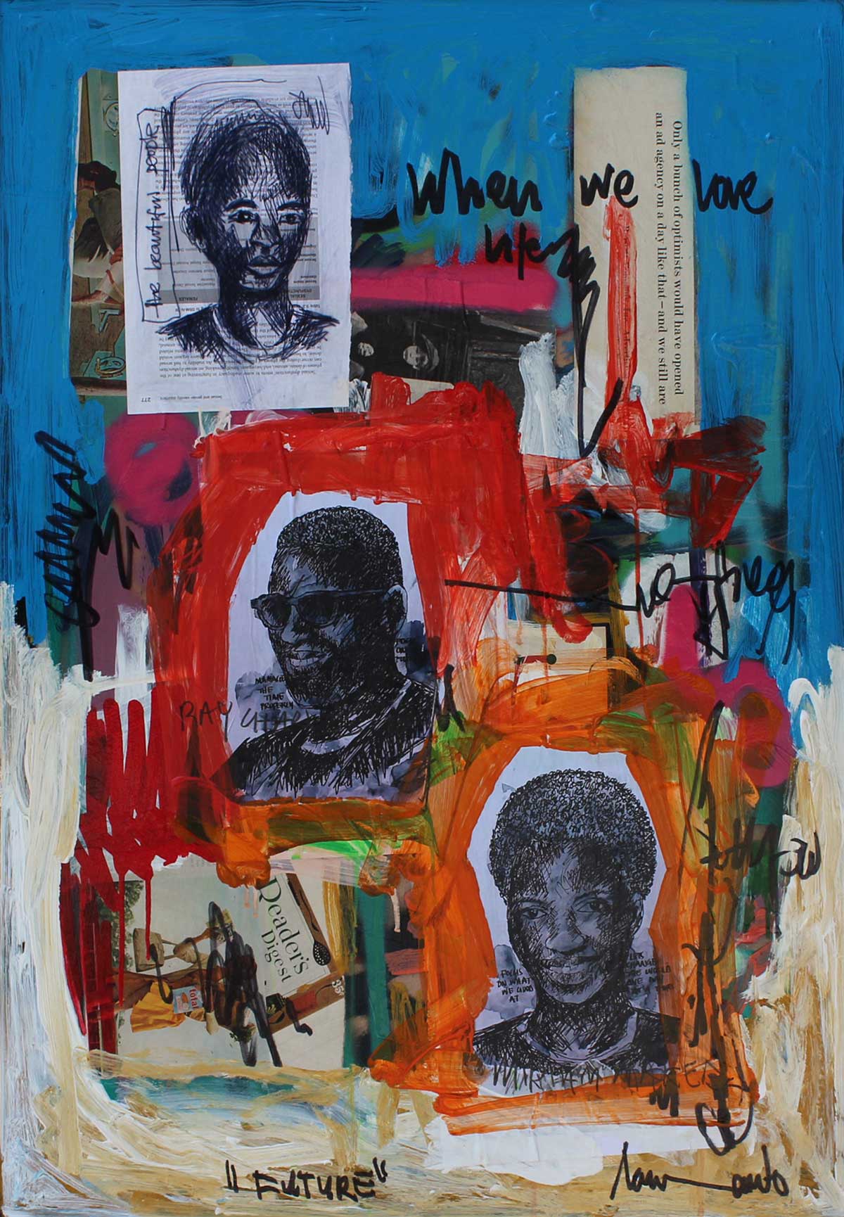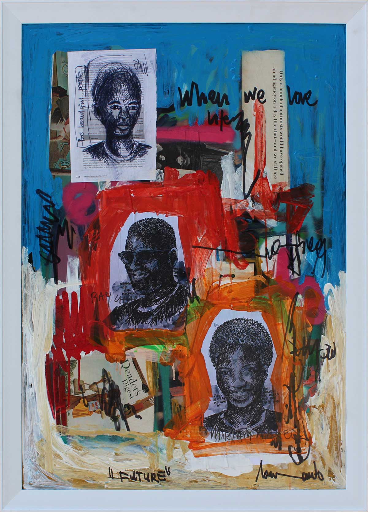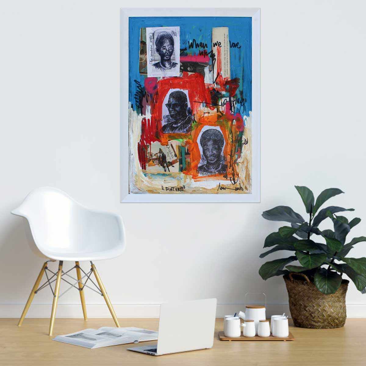 Future. Mixed Media and Collage 86cm x 63cm. Framed.