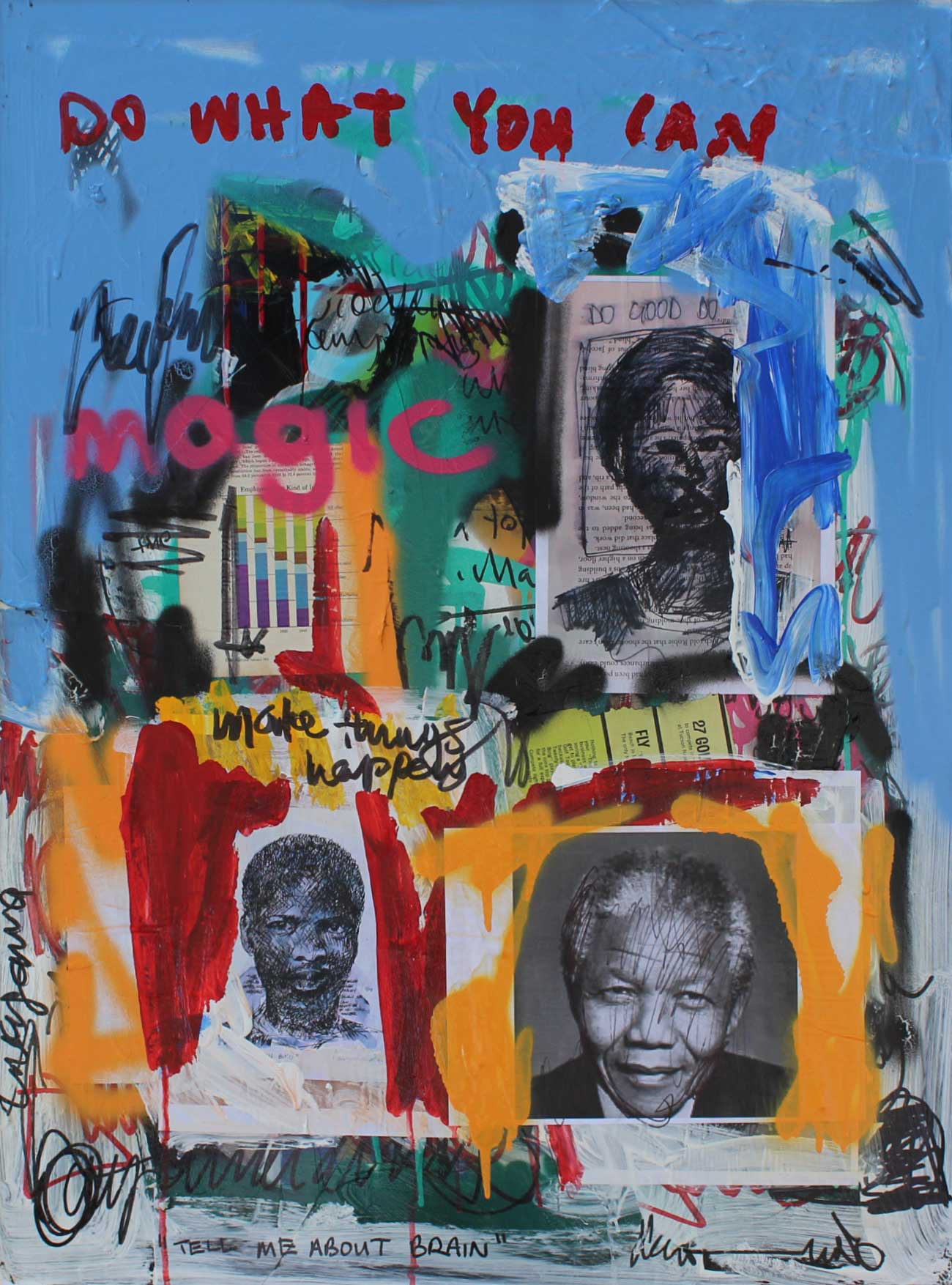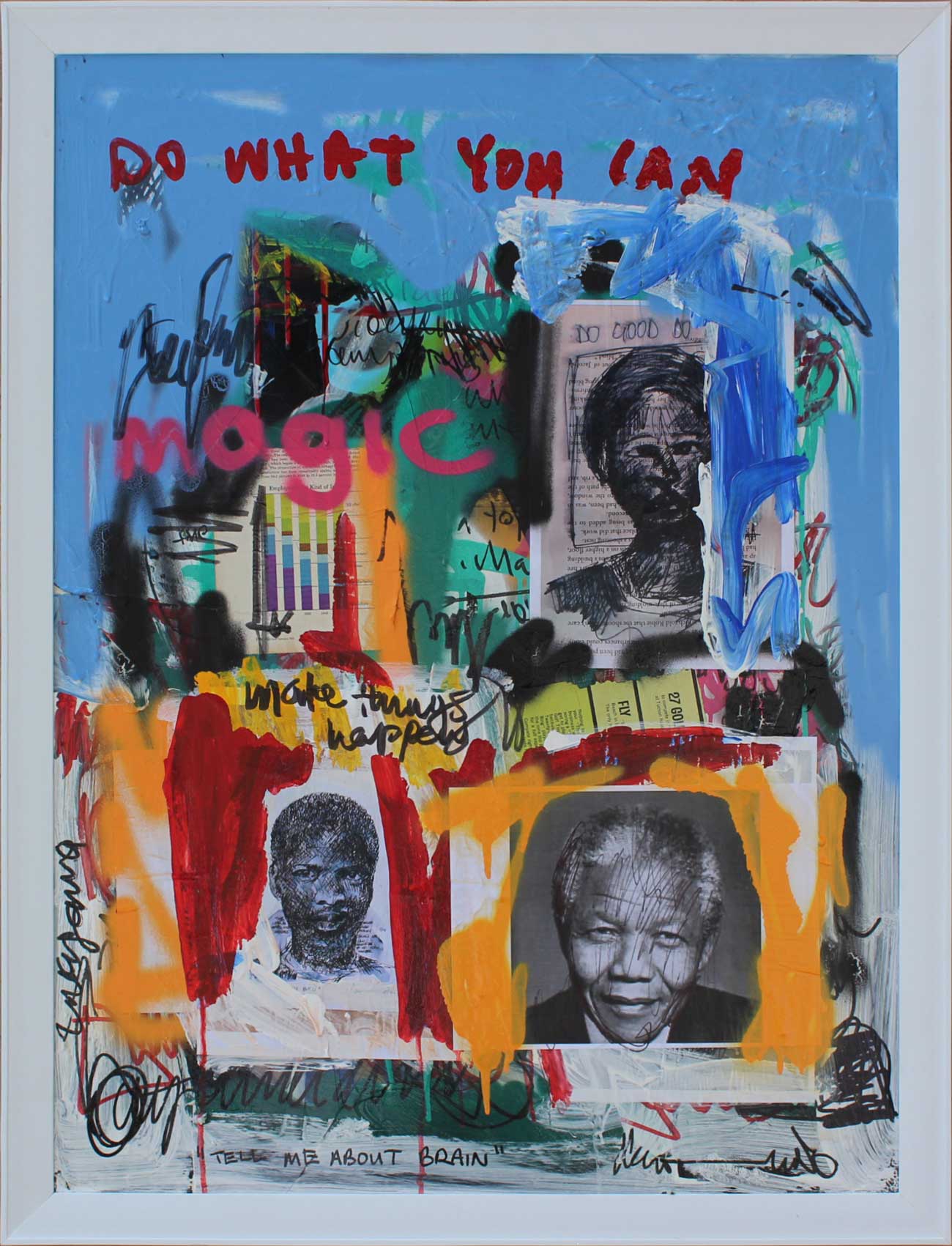Tell me about Brain. Mixed Media and Collage 93cm x 69cm. Framed.