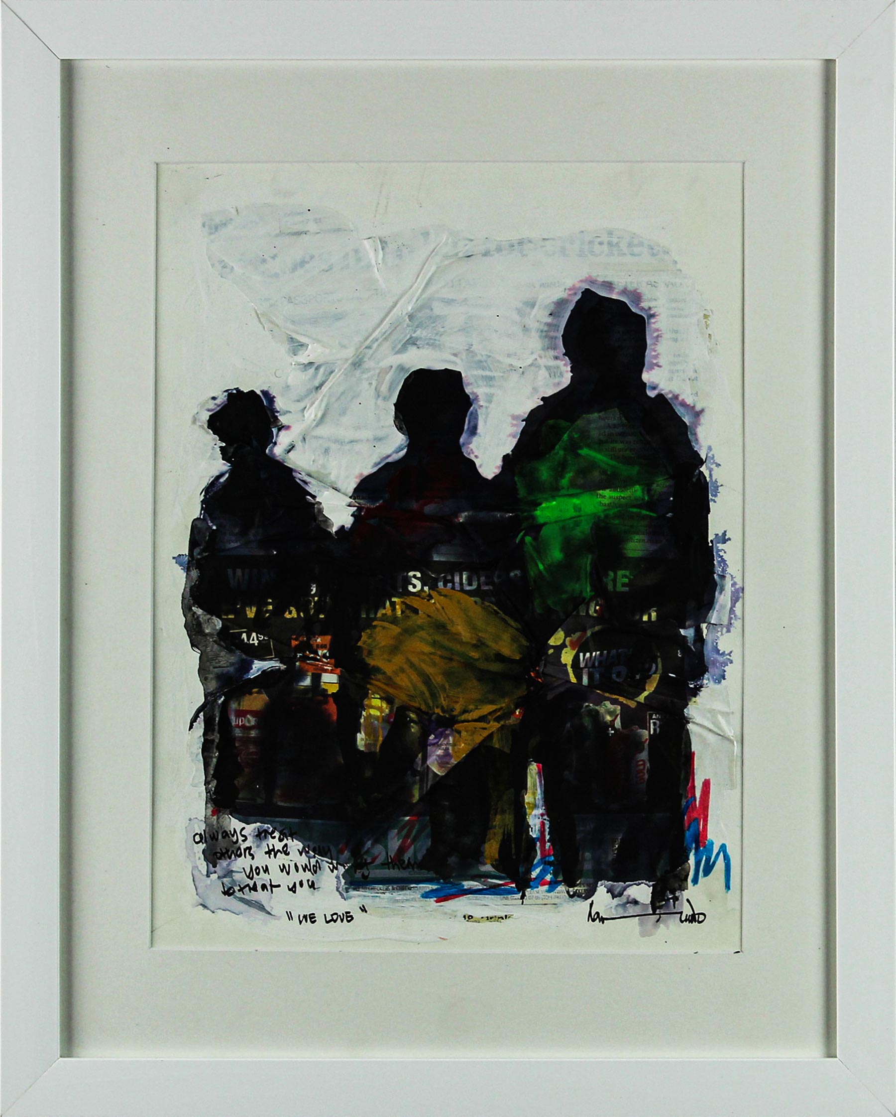 We Love. Mixed Media on Board, 40cm x 30cm excluding frame, 55cm x 44.5cm including frame. Framed.