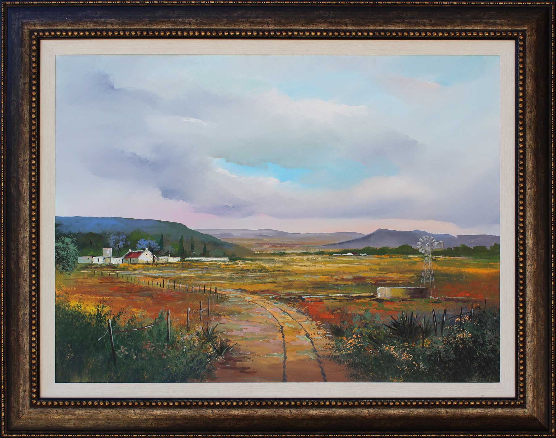 Landscape with Farmhouse and Windmill. Oil on Canvas 76cm x 101cm excluding frame, 101cm x 126cm including frame. Framed.