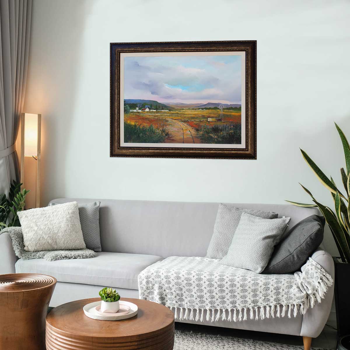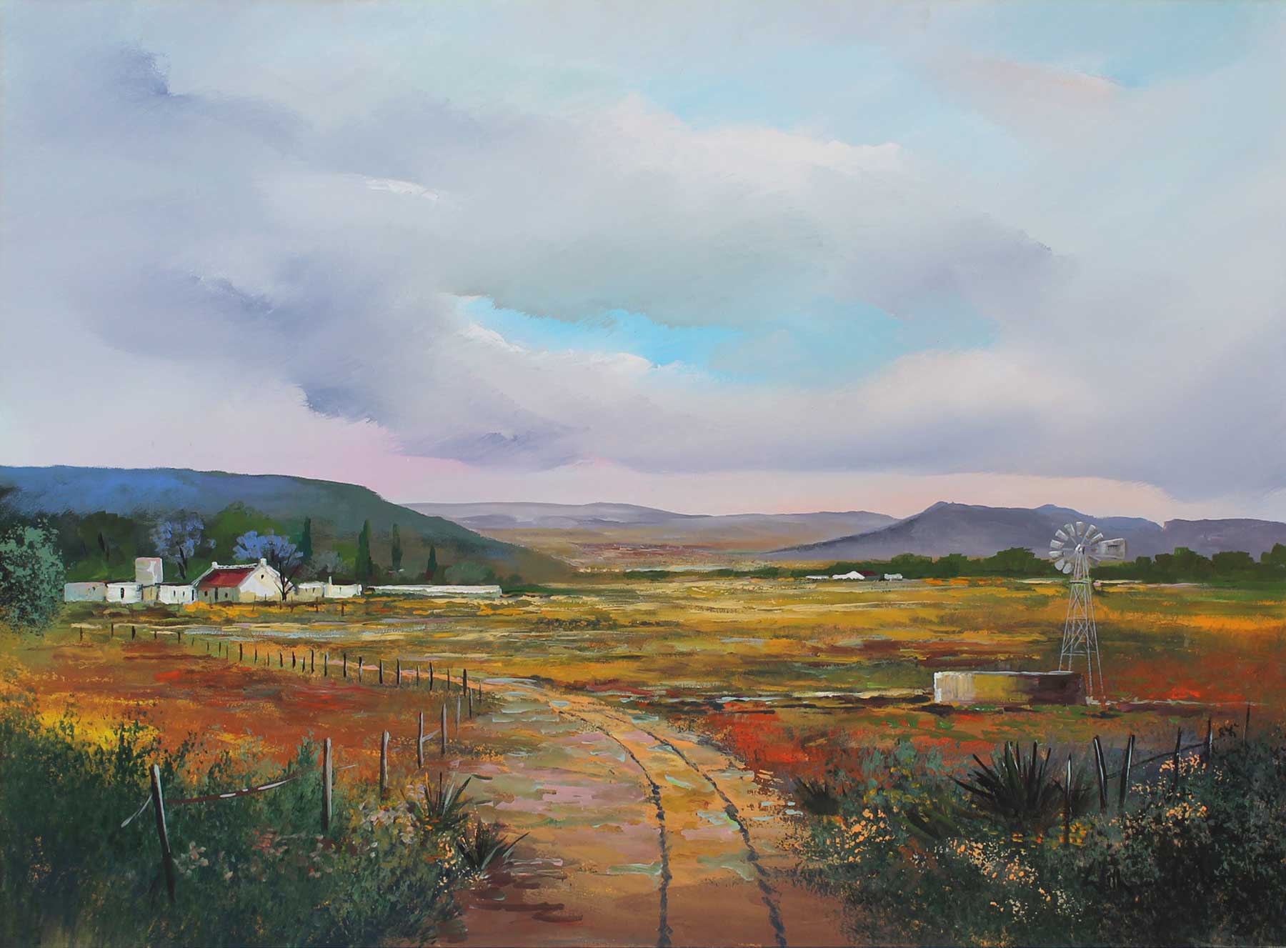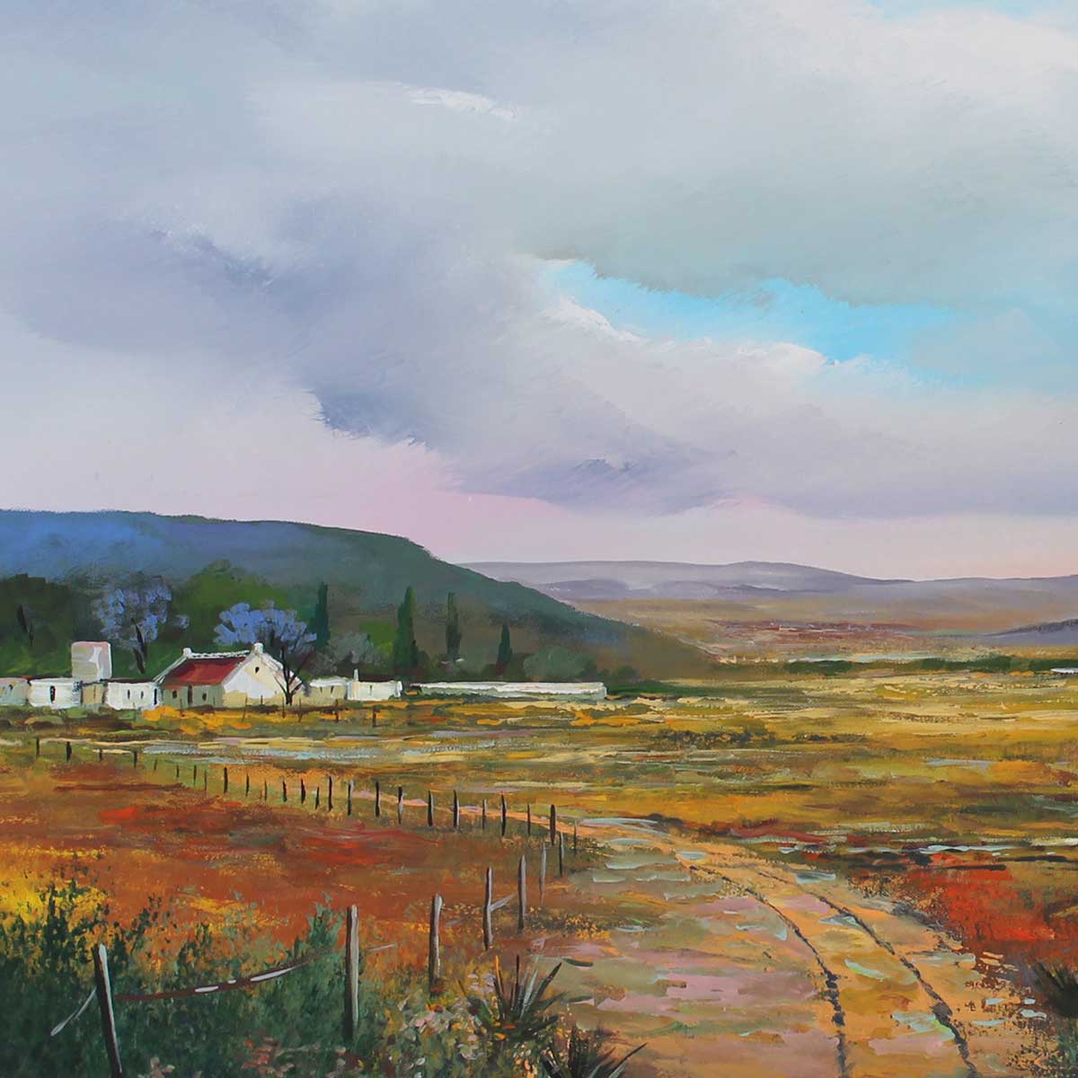 Breede River Farm. Oil on Board 50cm x 75cm. Framed.